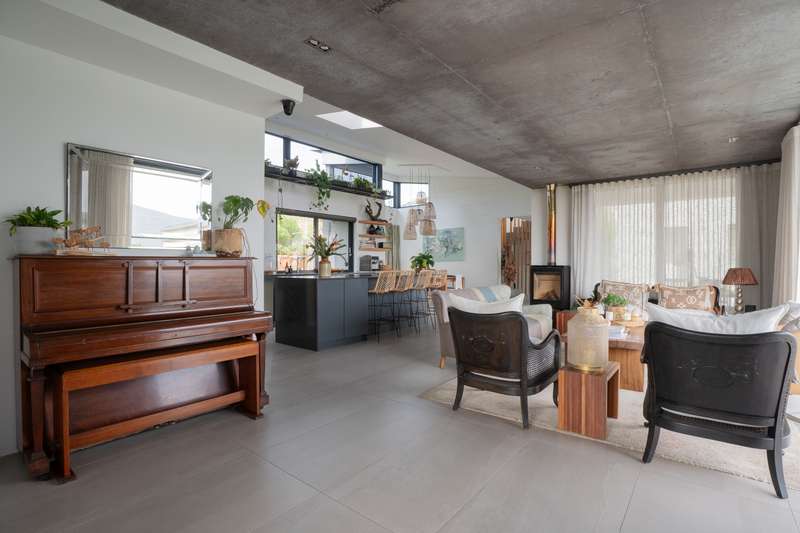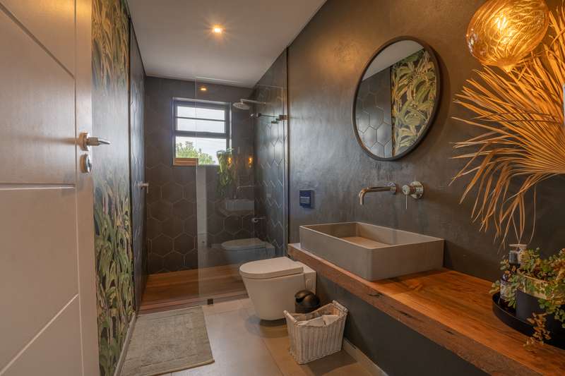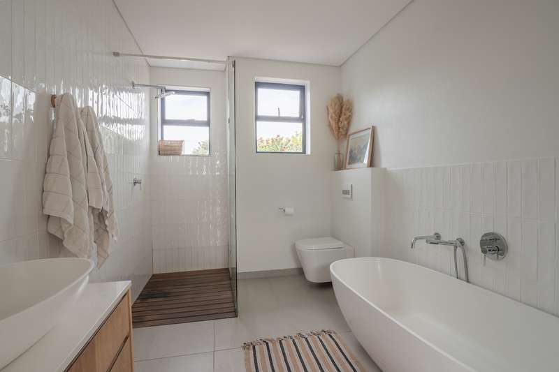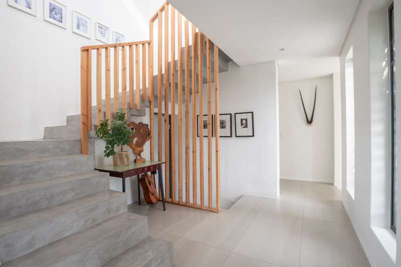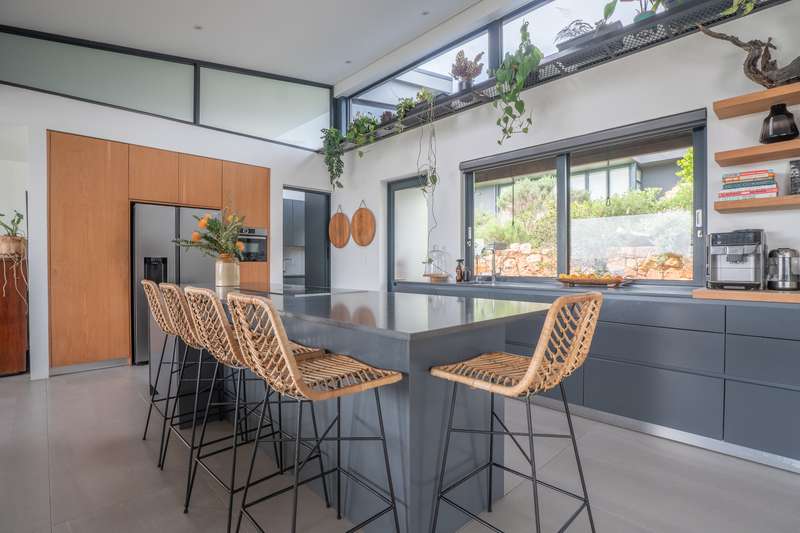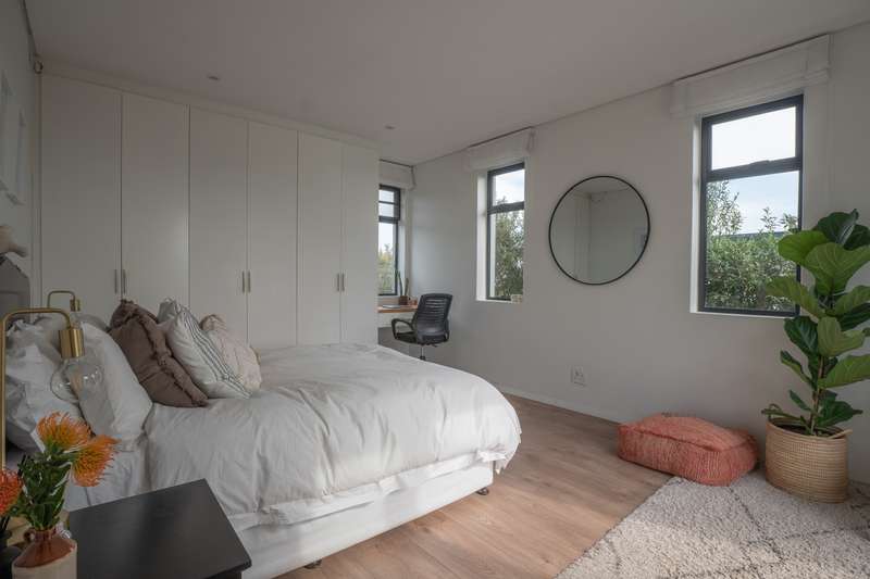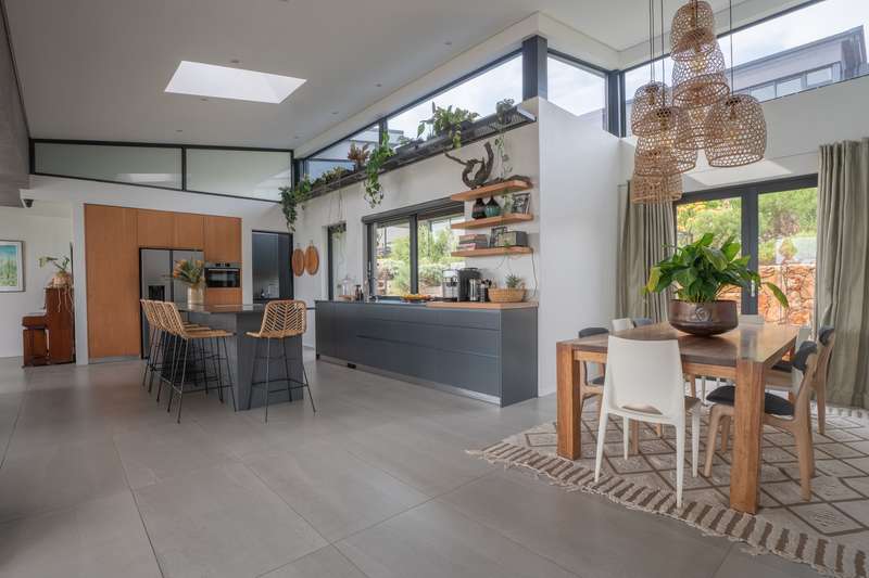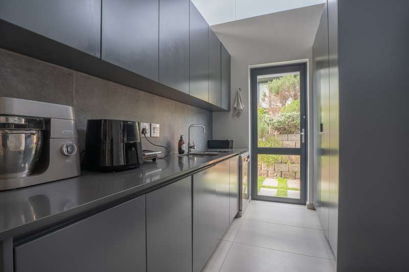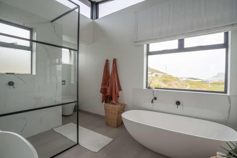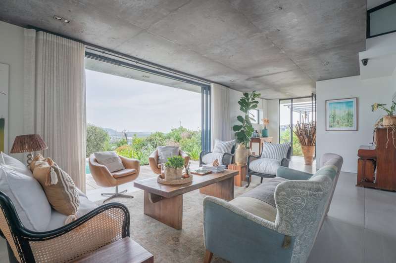 Situated high up in the Estate, welcome to your dream home in this sought-after eco-environment, where luxury meets coastal living! This stunning modern contemporary residence boasts an open-plan design, seamlessly integrating the lounge, dining area, and kitchen, perfect for entertaining and family gatherings. Step through the spacious lounge and entertainment area, where floor to ceiling glass doors lead to an exquisite outdoor oasis. Enjoy al fresco dining by the sparkling swimming pool or cozy up around the cleverly hidden fire pit—all while soaking in breathtaking views. The gourmet kitchen is a chef’s delight, featuring sleek Caesarstone countertops and a generous scullery and laundry area, ensuring functionality meets style. The lower level offers two spacious bedrooms each leading to a patio bringing the outside in, with two elegantly designed bathrooms offering modern finishes. The separate TV Room has a specifically designed built-in pull down double bed and could easily be utilised as a fourth bedroom, so there is ample space for family and friends. A separate study with shelving and a built-in desktop provides the perfect workspace for productivity. The Master Bedroom is situated on the upper level and offers a walk-in dresser, full main-en-suite bathroom and its own private balcony to enjoy stunning views of Noordhoek where you will be in awe of the magnificent sunsets. With impeccable details throughout, including concrete plinth ceilings, this home epitomizes contemporary elegance. The many extras include a solar geyser, battery back-up inverter, solar panels, water tank, garden irrigation and a built-in centralised vacuum system! This beautiful estate offers walking trails, a seasonal vlei and an abundance of indigenous flora and fauna. Don’t miss your chance to own this exceptional property and experience luxury living at its finest.