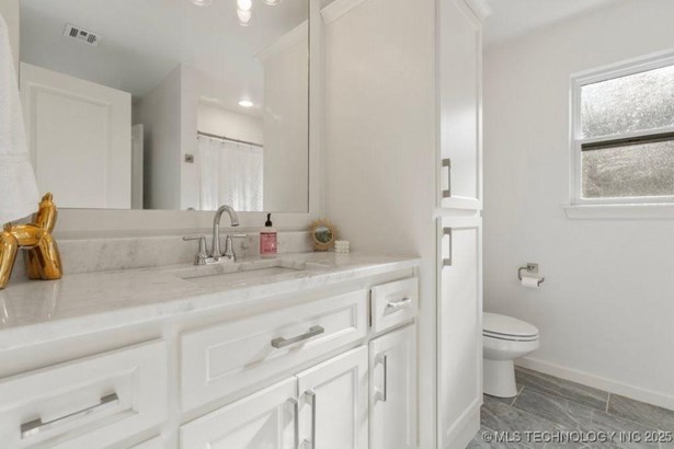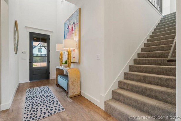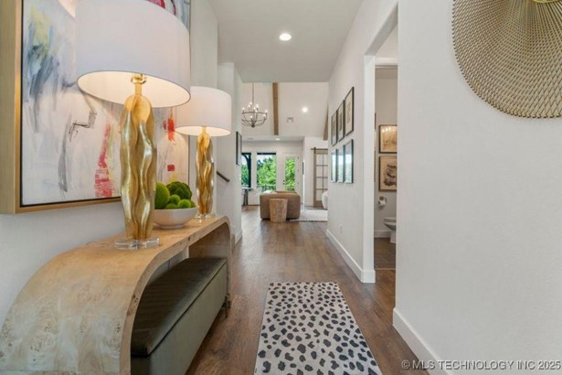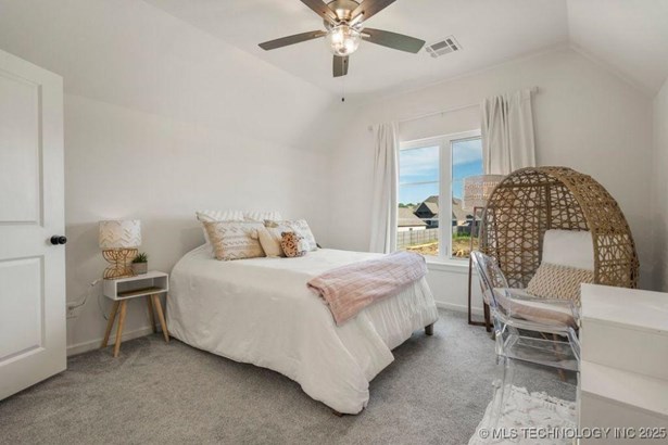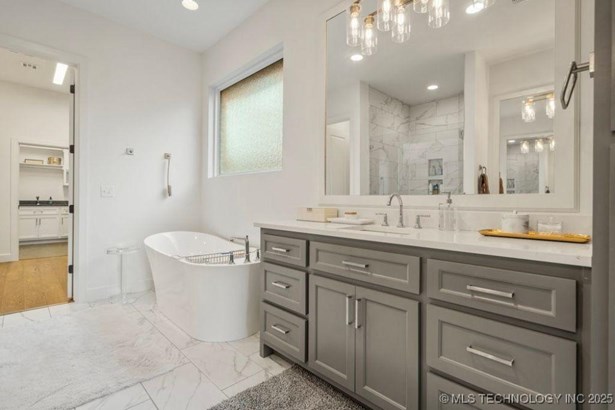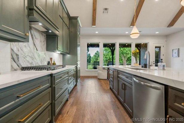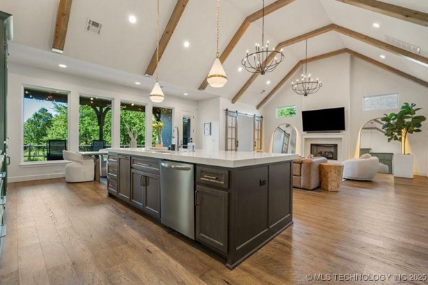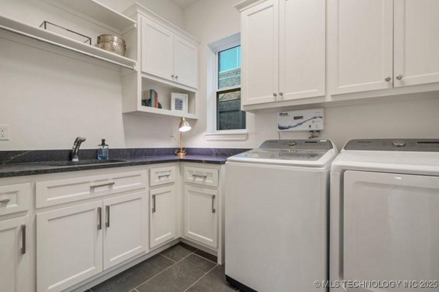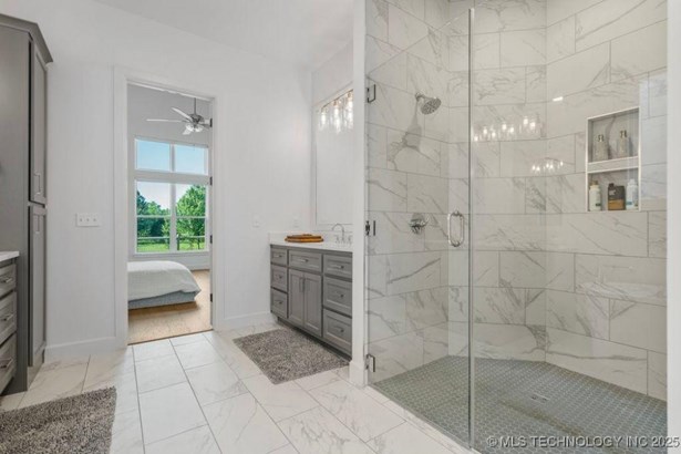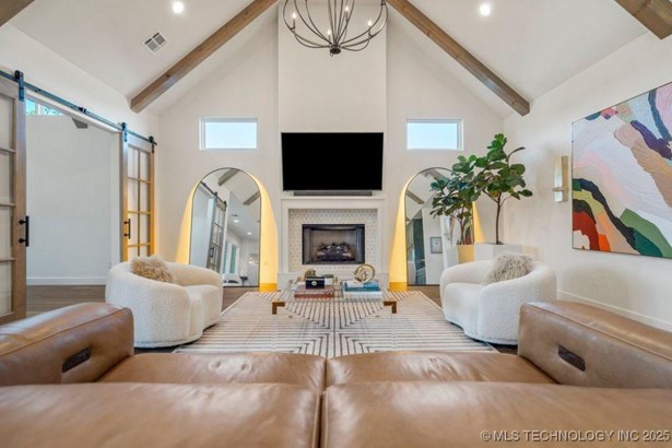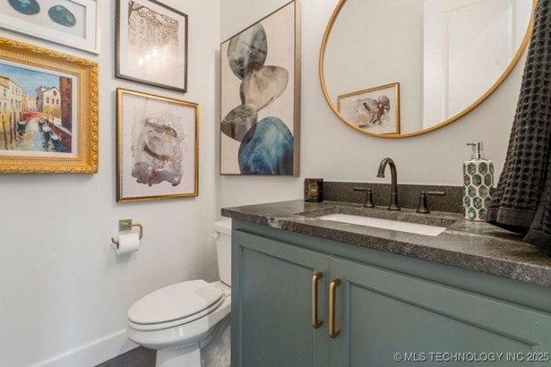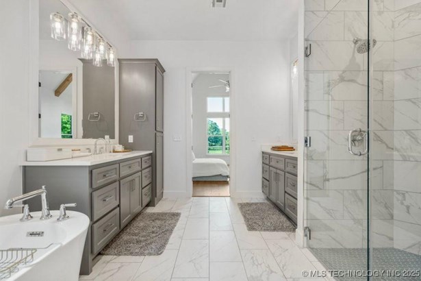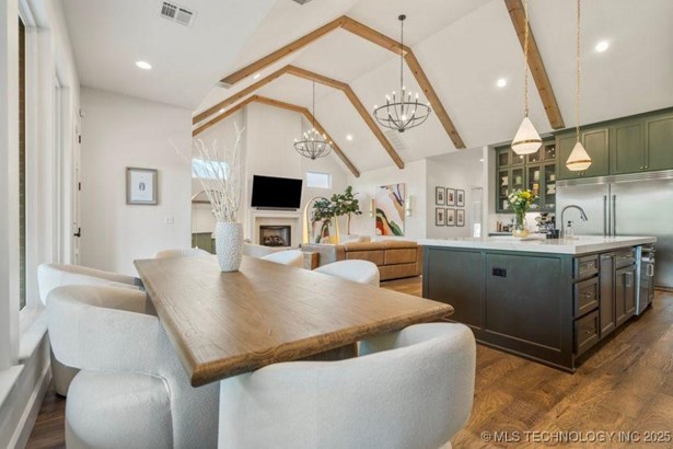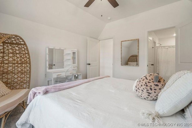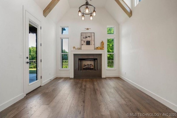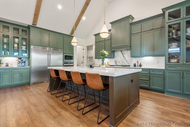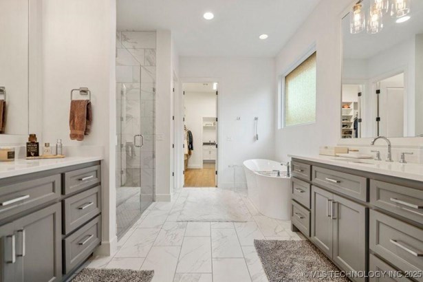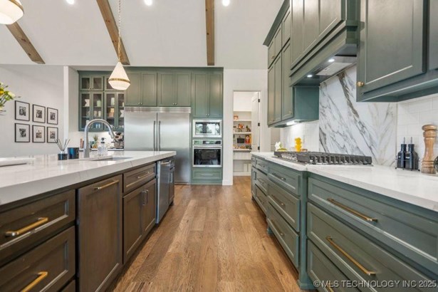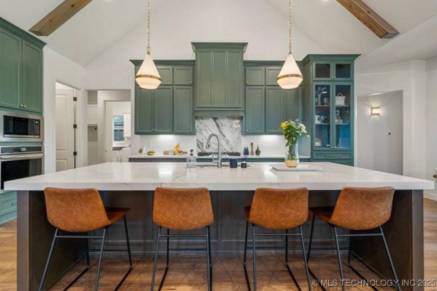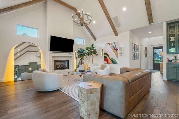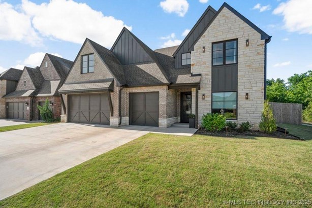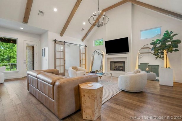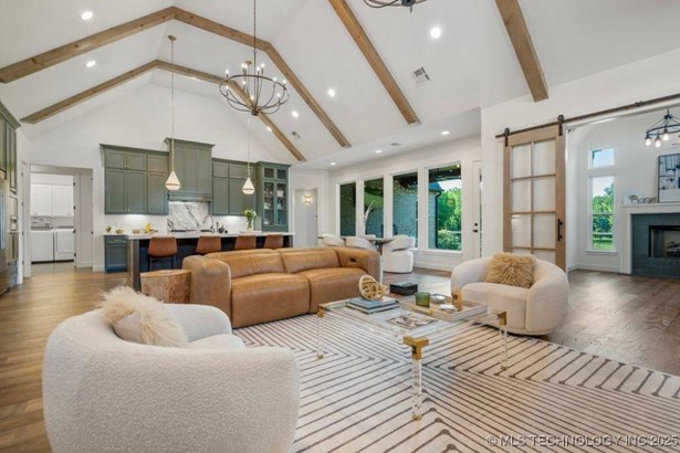 Complete privacy and tranquility in this gorgeous home located on a greenbelt! Open concept Great Room with high vaulted ceilings, providing a perfect space for entertaining and various furniture layouts. South facing living room is flooded with natural light from the high placed fireplace windows and a bank of windows along the whole back of the house providing the views of the wooded area behind. Custom features and finishes abound starting with the gorgeous kitchen. STUNNING Dark green parameter cabinets set high style marks and the huge island with gorgeous quartz counters accommodates plenty of seating. Another room (could be formal dining or office and also with a fireplace) offers additional living and entertaining space on the main level and also provides access to the back yard. In addition, there are 2 bedrooms on the main level and all bedrooms have ensuite bathrooms! Primary bedroom features vaulted ceilings and a beautiful view of the outside. Primary bath features oversized shower, a free-standing tub, and is connected to the large Primary closet that, in turn, connects to utility room. Upstairs opens up into a large game room and 2 additional bedrooms and 2 full baths, making every bedroom have their own private bath. This home is gorgeous and has many gorgeous details that makes it unique!