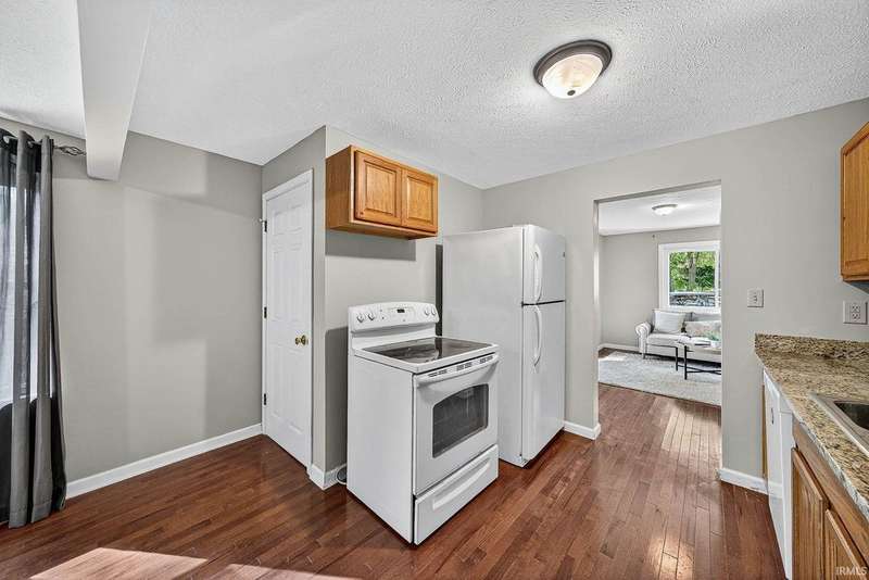 Steps from the Notre Dame campus, this 3 bedroom, 2 bath ranch offers convenient single-level living in a central South Bend location. The home features an open layout with hardwood floors, granite countertops, updated bathrooms, and main floor laundry. The primary bedroom includes double closets, while two additional bedrooms provide flexible living space. A detached 2-stall garage, extra parking, and a partially fenced backyard add practicality and room to enjoy outdoors. With easy access to shopping, dining, and Mishawaka amenities, this property is well-situated for both everyday living and game days!