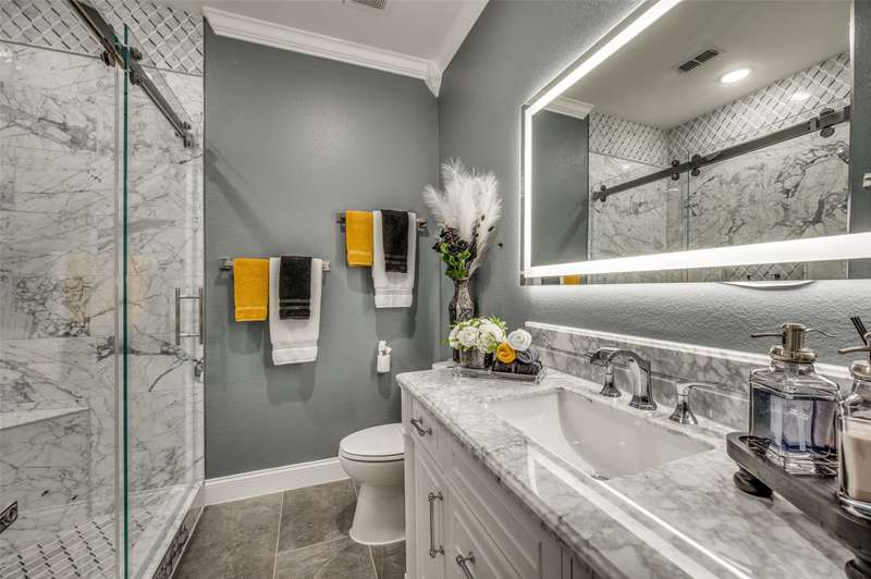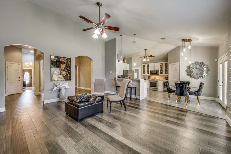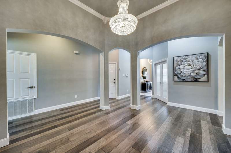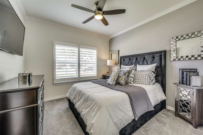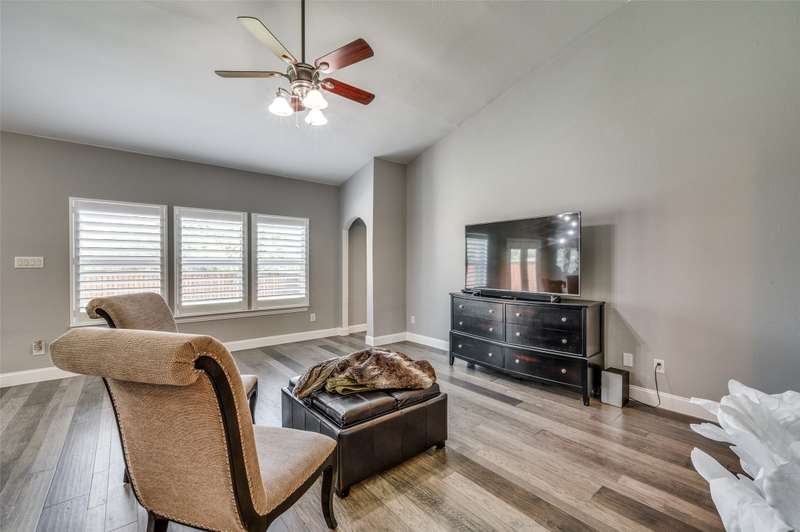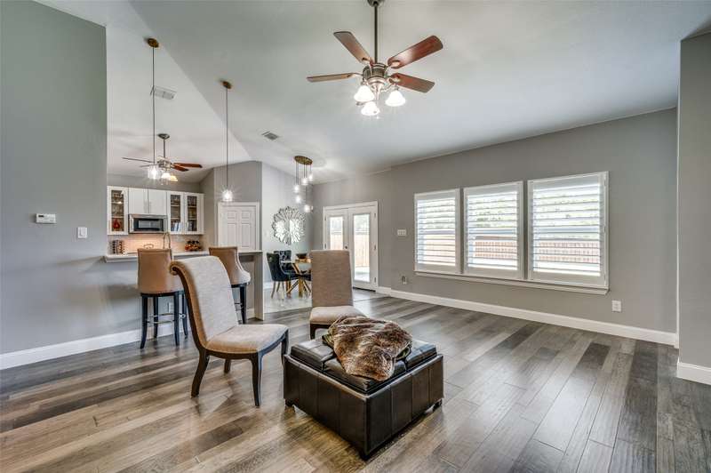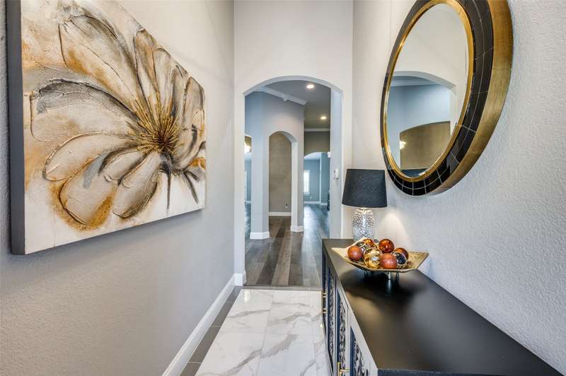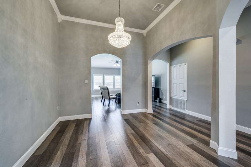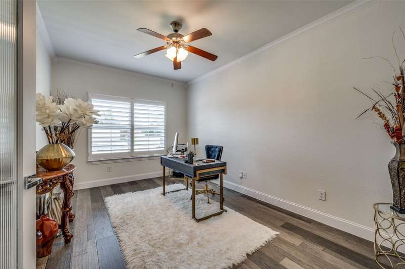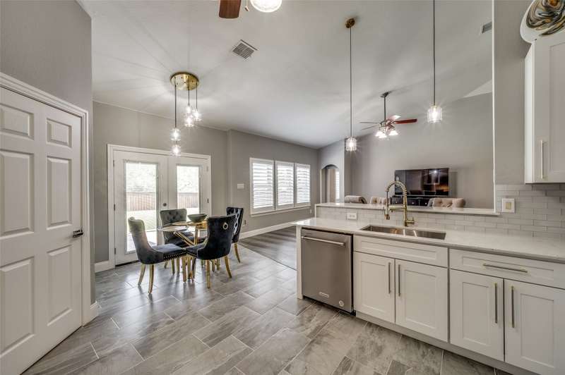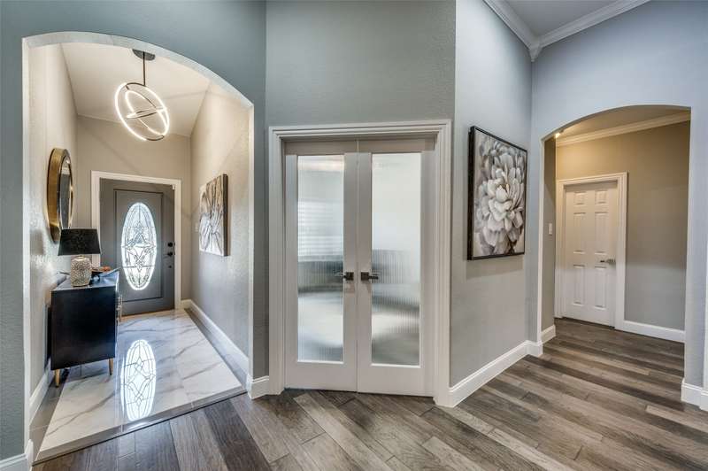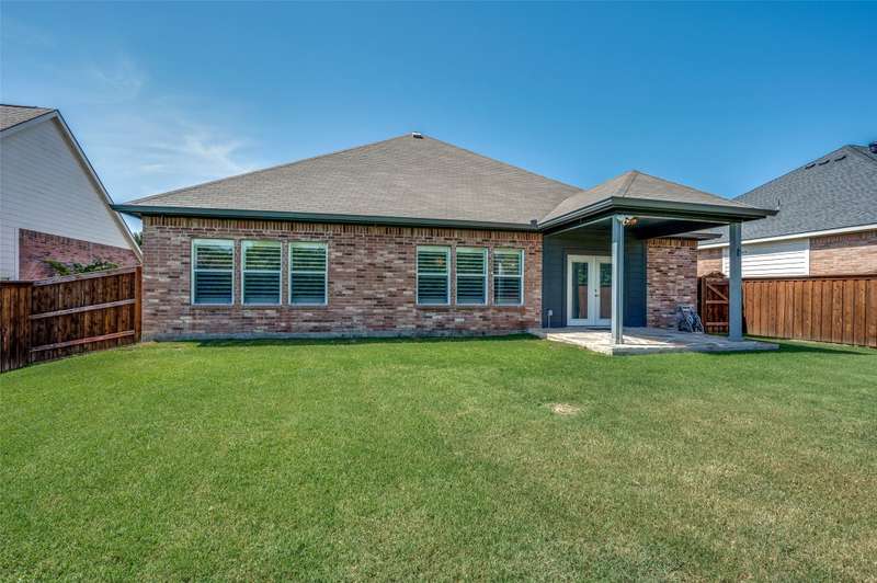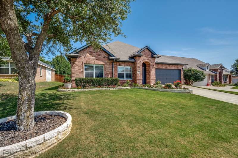 Immaculate and filled with upgrades, this 3-bedroom, 2-bath home with a private office offers the perfect blend of style, elegance, comfort, and convenience. From the moment you arrive, the incredible curb appeal, exterior uplighting, and award-winning landscaping (Yard of the Month) set the tone for whats to come. Step into a thoughtfully designed layout featuring 12-ft ceilings, a rotunda-style passageway, a formal dining room with a gorgeous chandelier, and an open-concept living area. The kitchen is a showstopper with stainless steel appliances (updated in 2022), a beautiful tile backsplash, and ample storage. The private primary suite is tucked away for tranquility and offers a true spa-like retreat with dual sinks, a soaking tub, dual-entry shower, and a spacious walk-in closet.This home has been updated to the MAX, featuring plantation shutters, custom light fixtures, an irrigation system surrounding the perimeter, and an extended covered patio with stamped concrete. The large backyard is ideal for relaxing or entertaining.Located just minutes from Lake Lewisville and Little Elm Beach, this stunning home truly has it all. From the high-end finishes to the thoughtful layout and unbeatable location this is the one youve been waiting.
