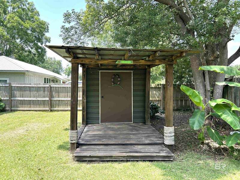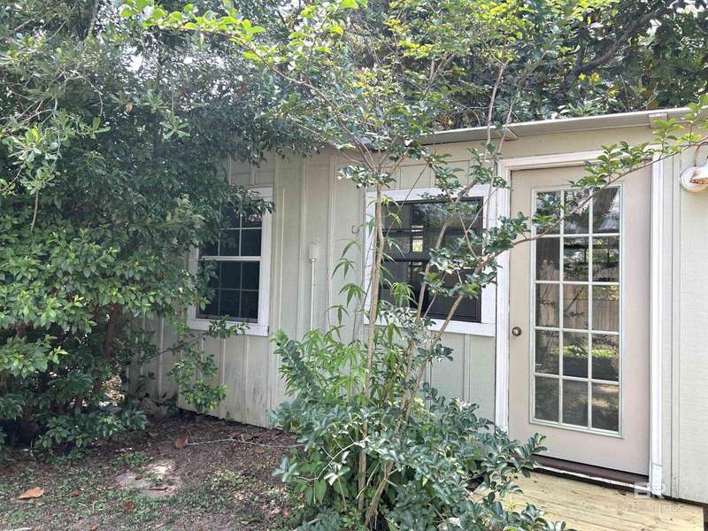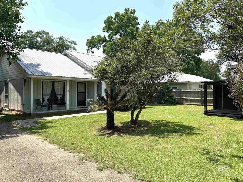 PRICED TO SELL!! Located in the heart of Robertsdale. Easy access to the beaches and shopping. Don't miss your opportunity for this adorable well-maintained cottage in the middle of a private oasis. This is a gardener's paradise! The fenced in property features tons of privacy whether you are in the front or back yard. Lots of ample storage in the front workshop or the she shed in the back. The living room has beautiful built-in bookcases and features a vaulted ceiling. Off the living room there is a bathroom and two bedrooms. The investment potential is huge! Buyer to verify all information during due diligence.