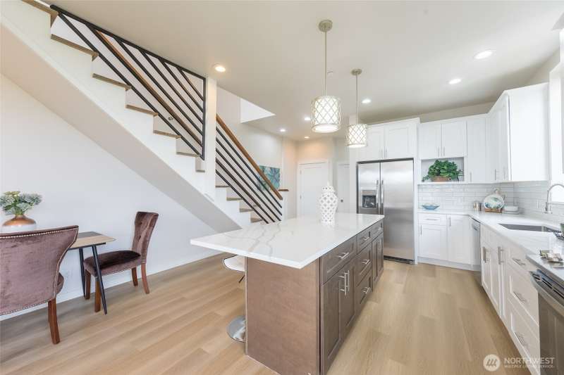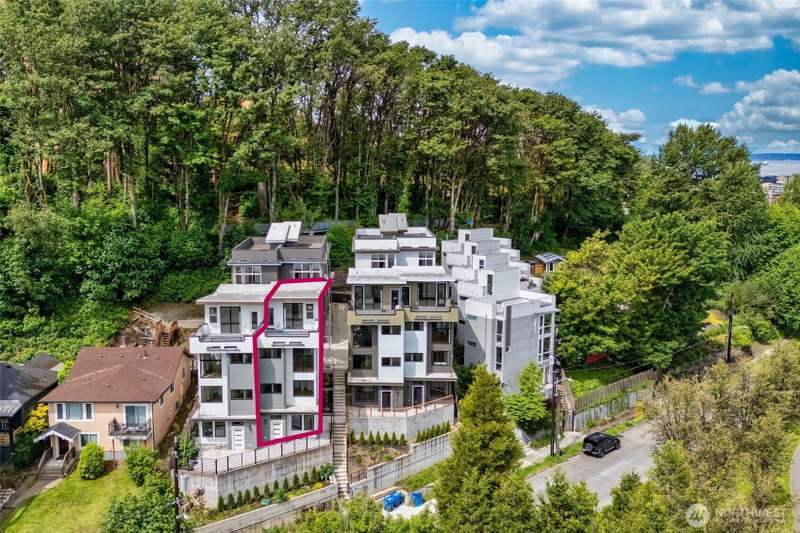 Wonderful Beacon Hill townhome amid private setting, well-appointed home backs to greenbelt and overlooking Daejeon Park. Conveniently located at the confluence of I-5 & I-90, just minutes to downtown Seattle and eastside employment centers. Nearby Eastlink light rail station expects to open in 2026 further enhance its accessibility. Spacious unit features 3Br/3.5Ba, 1,780 Sqft, huge owner suite that occupies entire top floor with large walk-in closet, dual vanity & plush rain shower. Efficient electric fireplace adorns living room, generous kitchen offers extensive island & abundance of cabinets. Highlights include floor to ceiling windows, 1-car garage & balcony with partial Mt Rainier view.