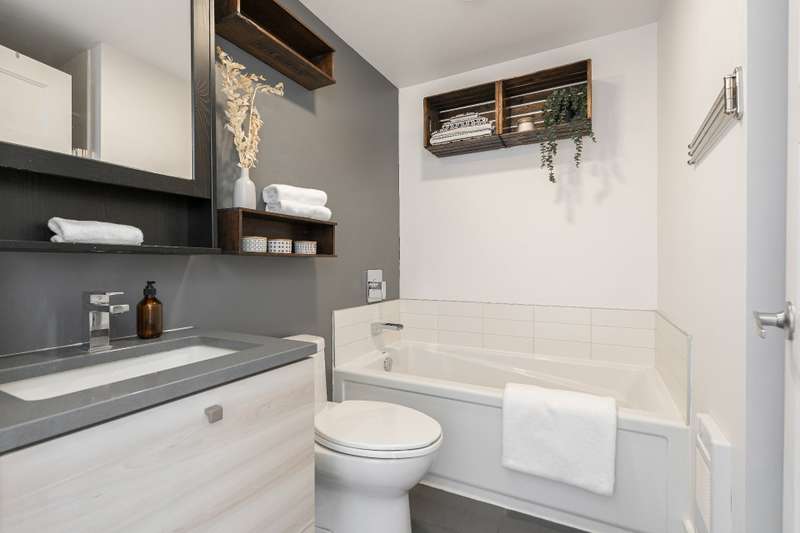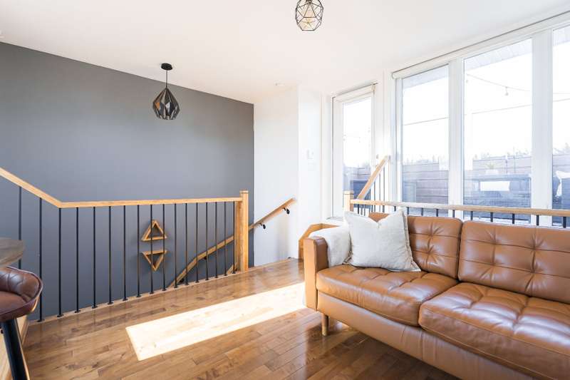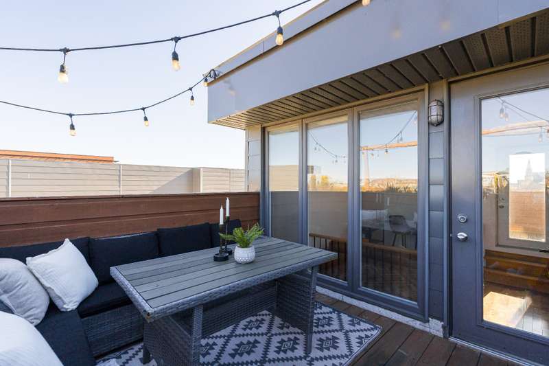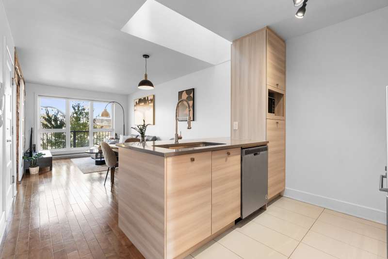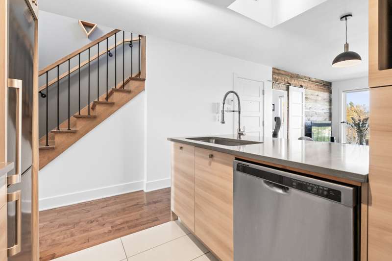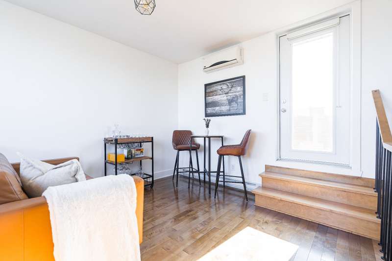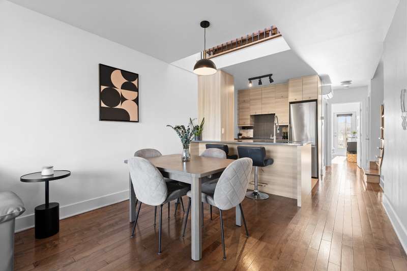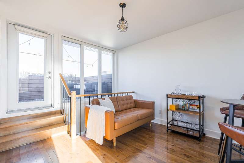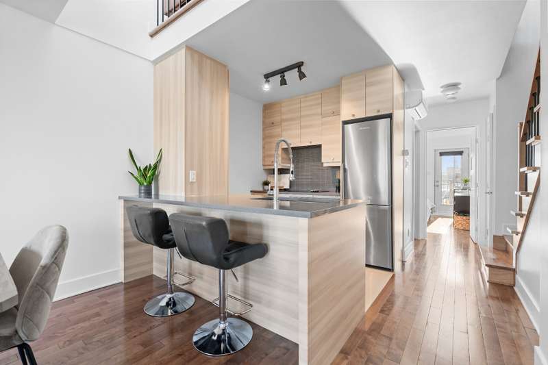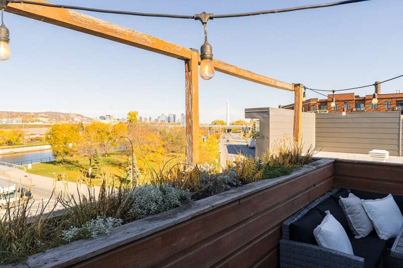 Fabulous top floor, 2-storey condo with indoor garage parking! Built in 2014 with 2 bedrooms and 2 private rooftop balconies showcasing incredible views of the Montreal skyline. Open concept modern living with streamlined colour palette and timeless finishings. The mezzanine offers extra living space. A rare opportunity! Located in the vibrant Sud-Ouest area, overlooking the Lachine Canal.