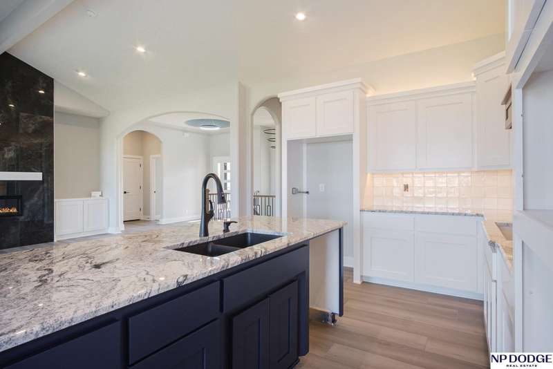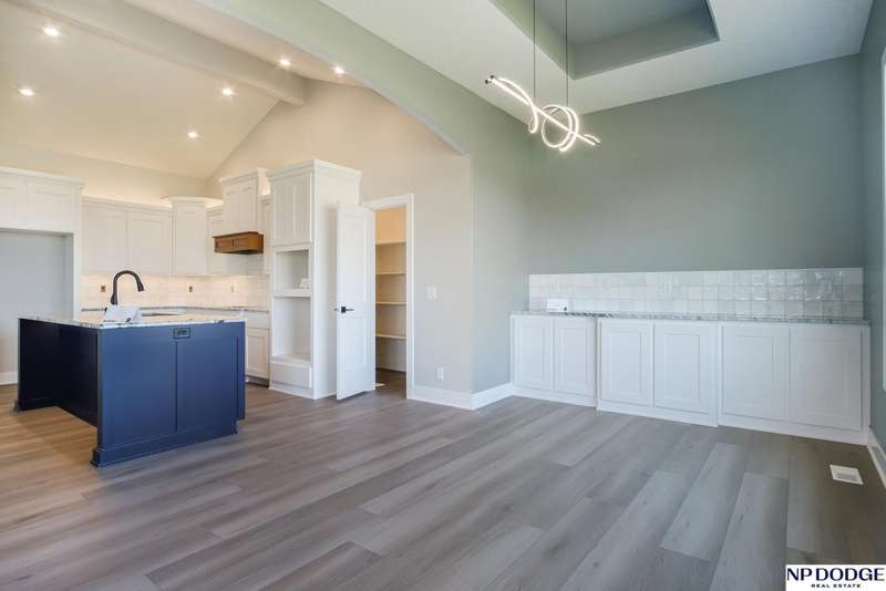 SSDL. New Ranch in Elkhorn's Blue Sage Creek! This new 5-bed, 4-bath ranch features everything you are looking for. Open concept floor plan featuring great room with fireplace, custom vaulted ceiling, & access to covered deck. Large kitchen has island, WI pantry, & dinette. Primary suite has WI shower, soaker tub, dual sinks, WI closet, & lots of natural light. Finished walk-out basement features a rec room with wet bar & media room, 2 additional bedrooms, office/flex room, & full bath. Four-car garage. Photos are from previous build.