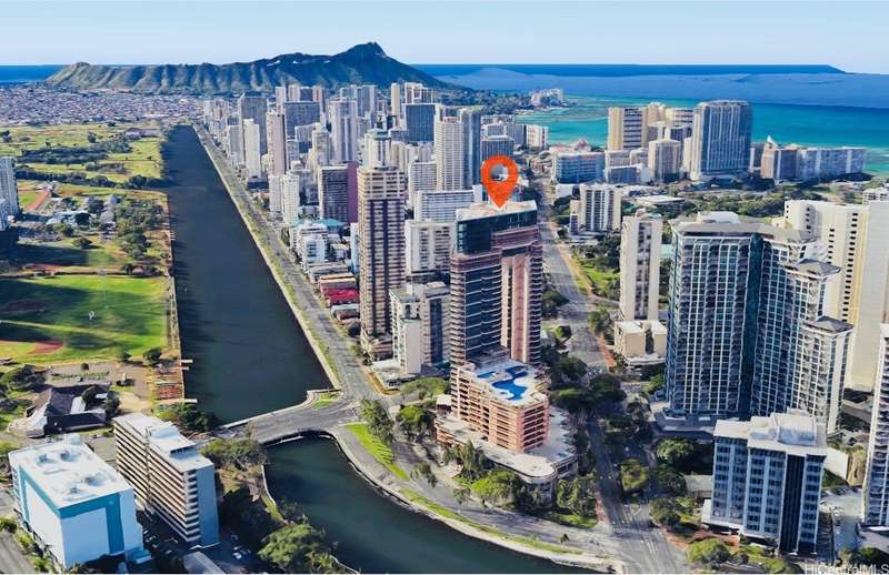 Terrific opportunity to own and customize the ONLY apartment in the building with a HUGE lanai. This unique 2 bdrm 2.5 bath apt offers 1,343 sq.ft. interior area PLUS a HUGE 840 sq.ft. lanai. It can be yours to create the home that inspires you! X6 - Resort Mixed Use Precinct zoning coupled with 30-day minimum rental policy (allowed by House Rules) offers flexibility for owners, 2nd home owners, and investors. Waikiki Landmark: Located at the entry to Waikiki, the building's striking architecture lives up to its name. Created as a luxury building, it offers concierge services, 24-hour security, a state-of-the-art fitness center and meeting room. The location, setting, and amenities imbue a resort like experience. Come, see, and bring your ideas to unlock all the possibilities this space has to offer! Yes, apartment is in its original condition. Apt is priced to accommodate your customization.