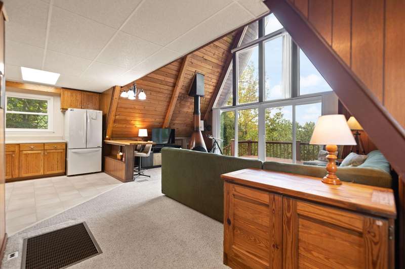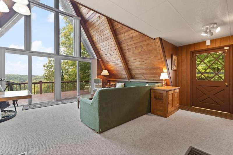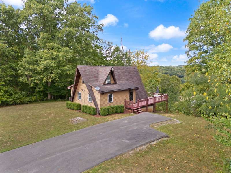 Beautiful furnished A-frame home with year-round views of Lake Cumberland, set on a full acre with two lots included! Offering 1,900 sq ft across three levels, this home features 4 bedrooms and 2 full baths. The main level showcases an open-concept living and kitchen area, filled with natural light from the large lake-facing windows. The partially finished basement adds even more potential, with a bedroom, full bath, laundry, workshop, and space that could easily be completed for additional living. Recent updates include a new HVAC system, new water heater, and fresh interior paint. Just minutes from the nearest boat ramp, this property offers excellent investment potential or the perfect retreat for lake living!