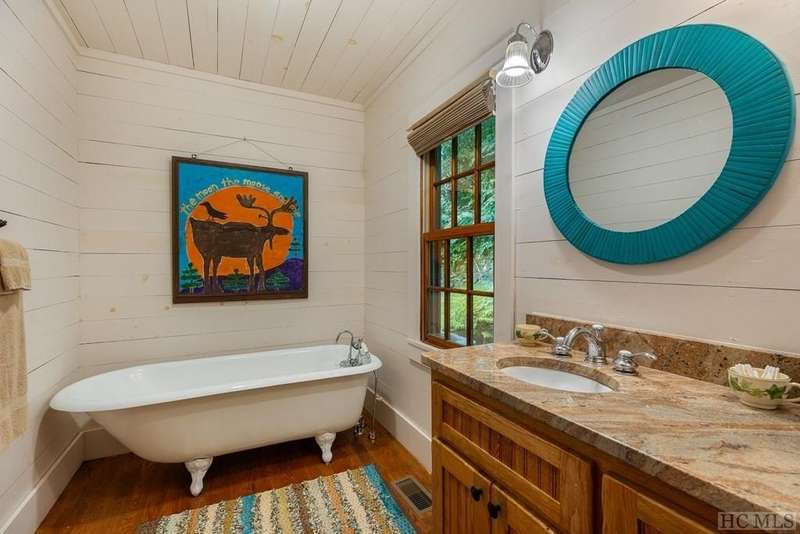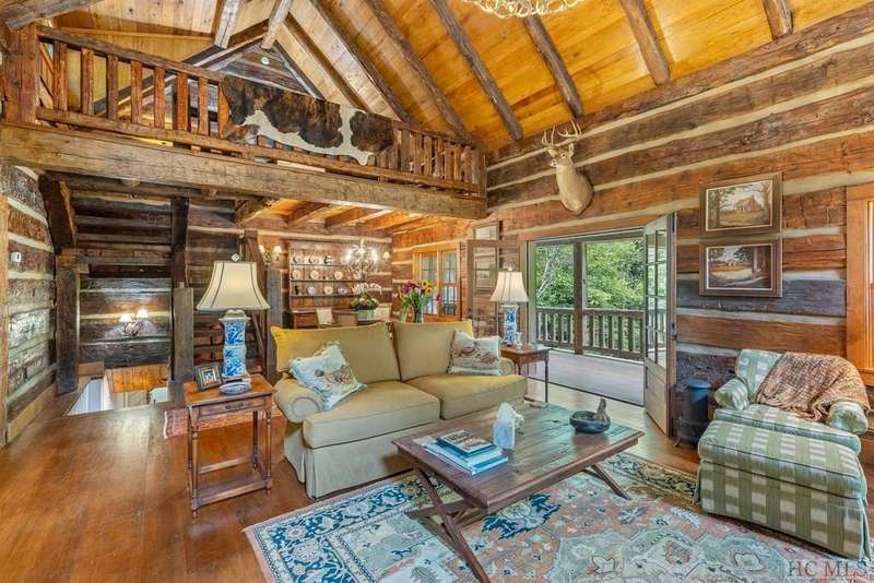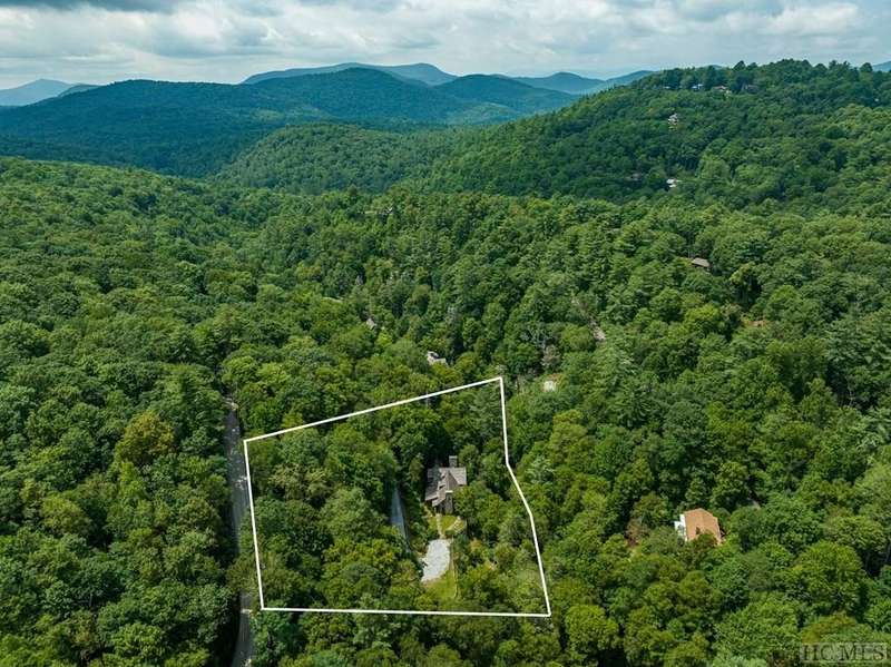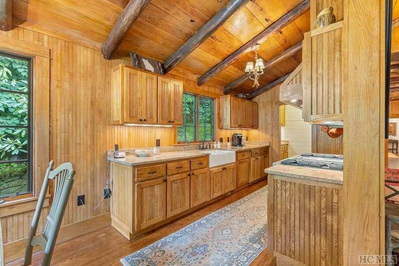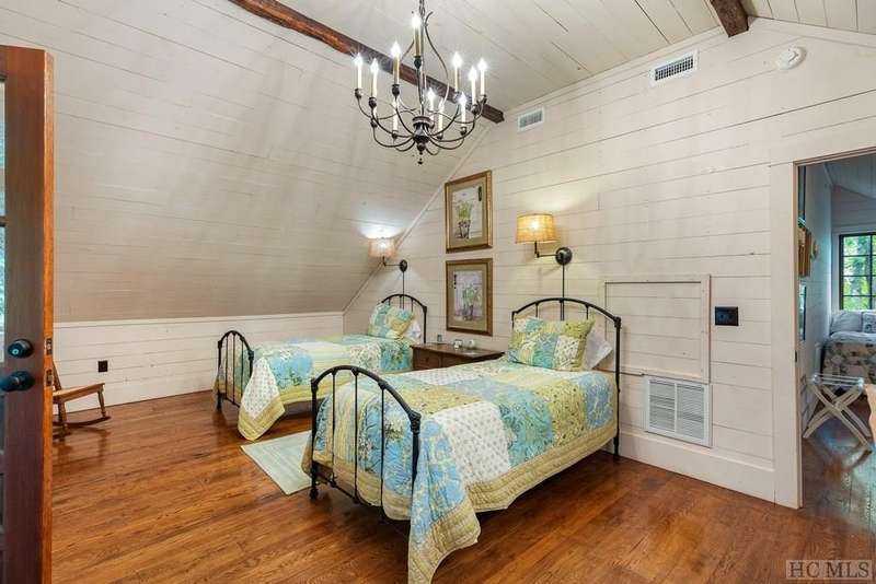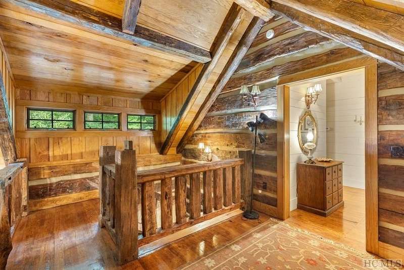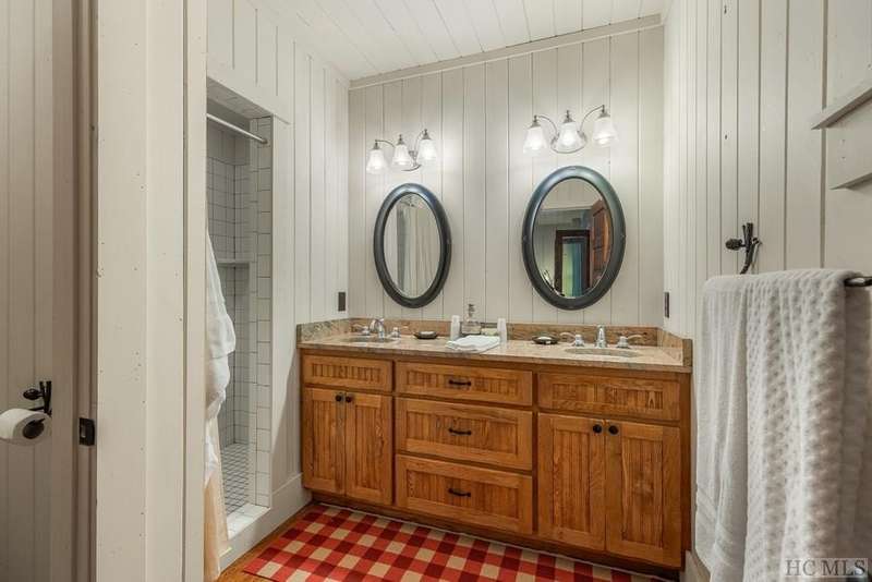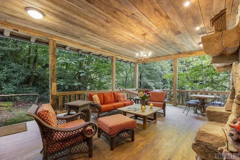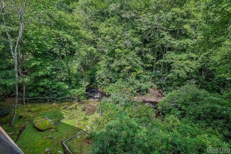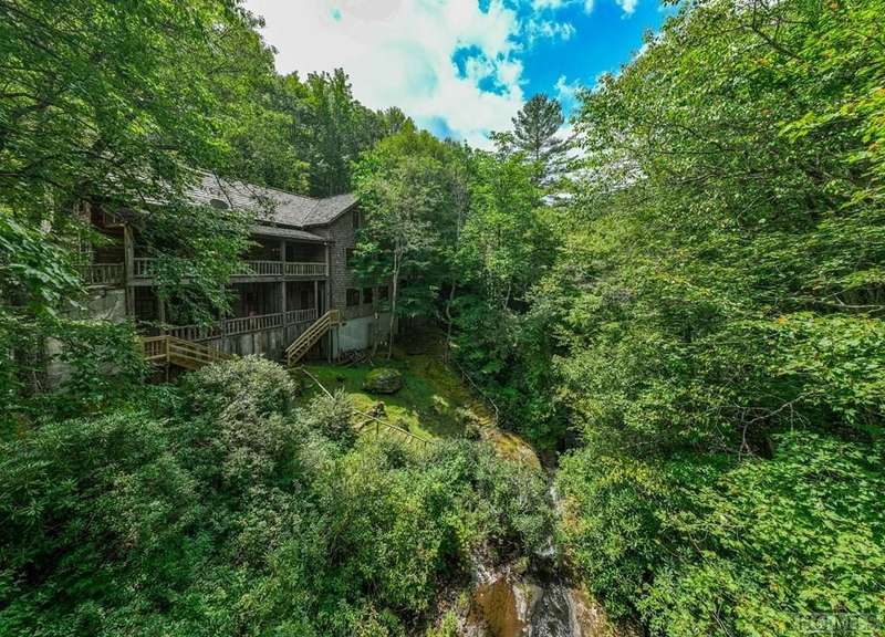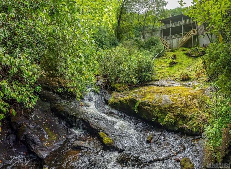Discover the quintessential Highlands home, masterfully crafted by renowned local builder Tommy Chambers and completed in 2010. This 4 bedroom, 5 1/2 bathroom masterpiece showcases the unparalleled charm of antique Pennsylvania timbers, seamlessly blending historical character with modern amenities. Nestled on 1.82 private acres, the property overlooks the picturesque Big Creek and waterfall, whose soothing sounds can be enjoyed from each of the home's seven covered porches. A large family can sleep 10 easily and still have privacy Inside the home, you'll find three extraordinary stone fireplaces, constructed from locally sourced boulders uncovered during construction, adding a rustic elegance to the space. Additionally, there is another fireplace on the lower level large porch. The expansive main level living room features soaring ceilings, a loft, and a grand fireplace, with direct access to a covered porch that offers breathtaking views of the cascading creek and waterfall. The kitchen features a breakfast area, sub-zero refrigerator, hard surface countertops, a high-end double oven gas range with griddle, grill, heat lamps and exhaust. The main level primary bedroom is a tranquil retreat, complete with a beautiful fireplace, vaulted ceilings, and a large private porch. Each spacious guest bedroom includes an ensuite bath and its own private covered porch, ensuring comfort and privacy for all. Though this home is conveniently close to town, it offers a serene escape from the world, where history, craftsmanship, and natural beauty converge. Adding to its allure, the property is just moments away from the upscale SkyLine Lodge and Oak Steakhouse, providing quick and easy access to a town favorite restaurant and bar. Experience the timeless allure and historical richness of this expertly designed home, where every detail has been thoughtfully crafted to create a sanctuary of peace and elegance.