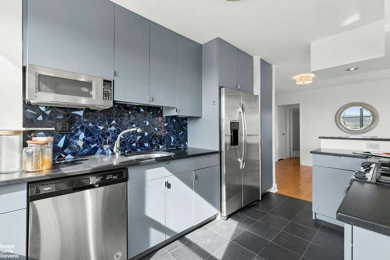 The expansive windowed open kitchen is the heart of the home, completely re-imagined creating an inviting space for casual meals and gathering on the corner breakfast bar countertop with stainless steel appliances and pantry. Savor the al fresco lifestyle and ever-changing skyline colors on the first balcony accessed off the living room for dazzling outdoor dining and relaxing. ;