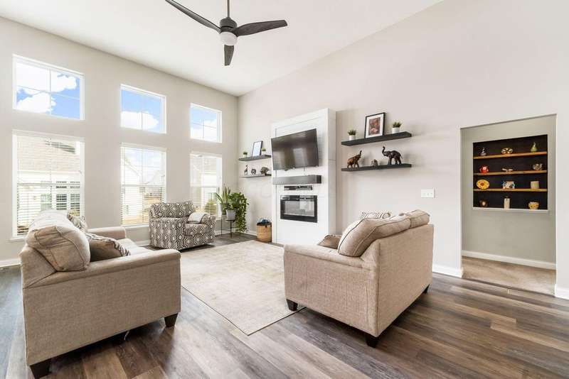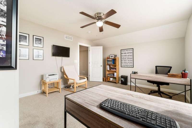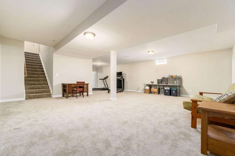 This home offers a spacious open layout featuring a large kitchen island, pantry, high-end cabinetry, and premium appliances. The great room boasts soaring ceilings and a fireplace, while the first-floor flex space works well as a formal dining room or home office. A bright morning room sits just off the kitchen. The primary suite is conveniently located on the main level with a walk-in closet, double vanities, and a walk-in shower.Upstairs, you'll find a loft and a fourth bedroom with its own full bath?ideal for a teen suite or guest space. The basement is a true bonus, with a partially finished rec room, multiple storage areas, and a large unfinished room that could be transformed into a theater, game room, or bar.The backyard offers privacy with evergreen trees, and the location is just minutes from the Village of Pickerington, schools, parks, churches, and more.