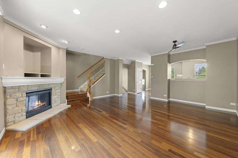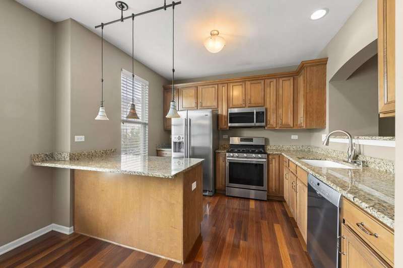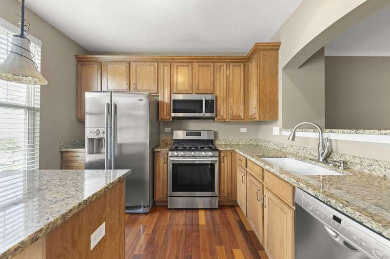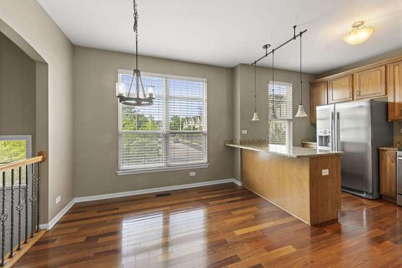 Here's your chance. This fantastic, luxurious townhome! The thoughtfully designed open floor plan features a gourmet eat-in kitchen with high-end stainless steel appliances and Brazilian teak hardwood floors. The spacious living and dining area includes a grilling deck, perfect for entertaining. Upstairs, you'll find a large primary suite with a glamorous ensuite bath and walk-in closet, plus extra storage and a well-appointed hall bath. The lower level offers a extra space for a exercise/storage room and a convenient laundry/mudroom. This home also includes a two-car garage and is situated on a private lot, just minutes from the supermarket, Fox Valley Shopping Mall, and the Route 59 Metra station.