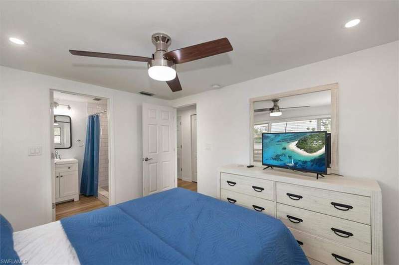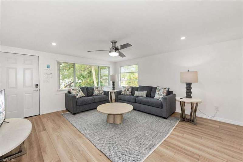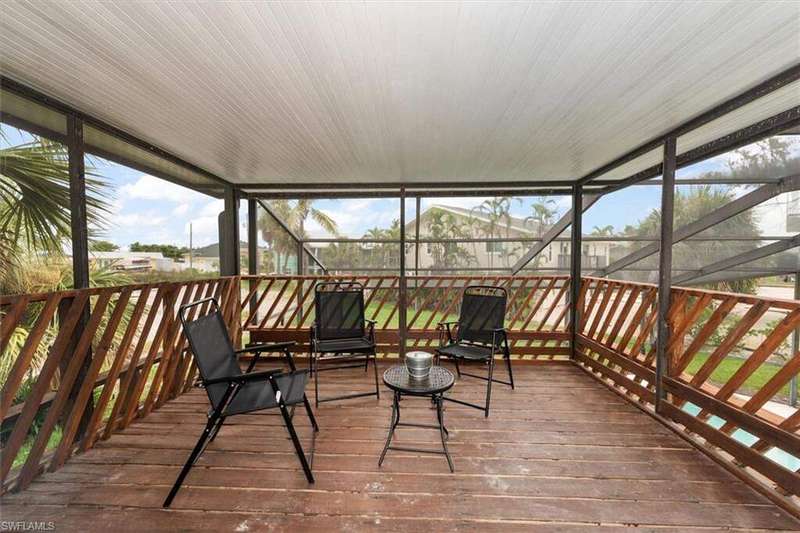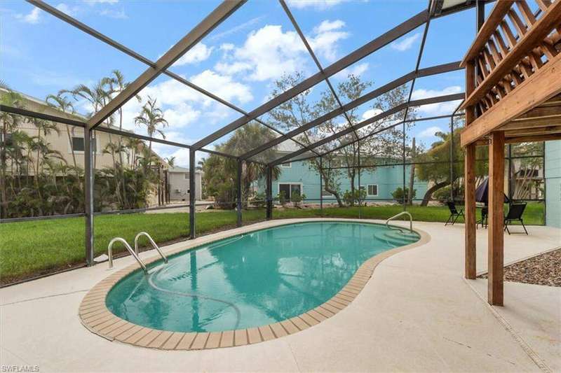 BEST priced elevated WEEKLY rental zone pool home on Ft Myers Beach, only steps from the white sands of the Gulf! This turnkey furnished heated pool home on Ft Myers Beach has been completely remodeled with LVT flooring throughout, bright white shaker cabinetry and an open floor plan. The kitchen also features quartz counters and stainless appliances and overlooks the main living space! Both ample sized bedrooms have their own private bathrooms with custom tiled walk-in showers and amazing natural light. Step outside to your screened upper balcony to enjoy your morning coffee and Tropical views. This remodel was fully permitted and includes a new roof, plumbing,electrical,AC system, and so much more! Perfect for the snowbird, investor, or a combination of the two. Did I mention the huge lot? Schedule your appointment today!