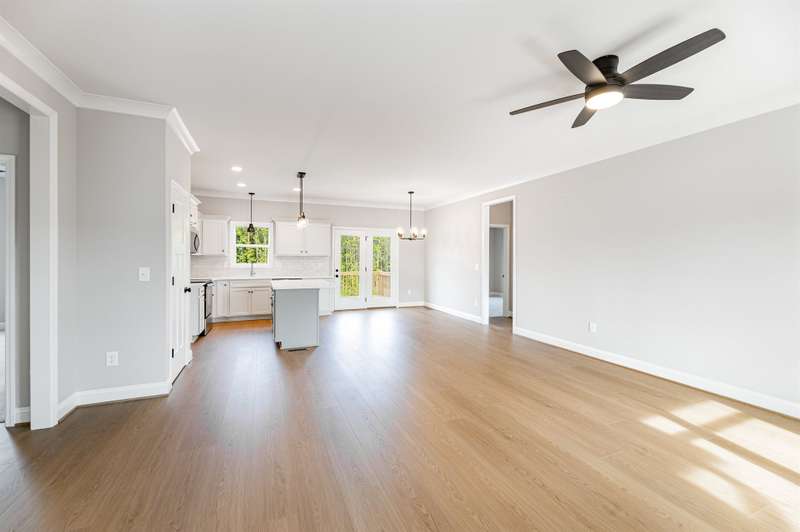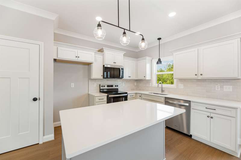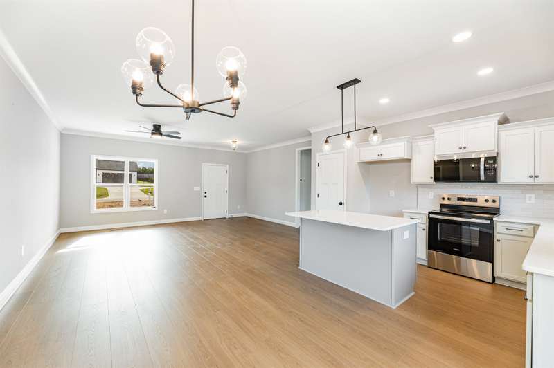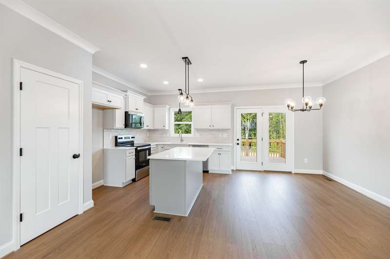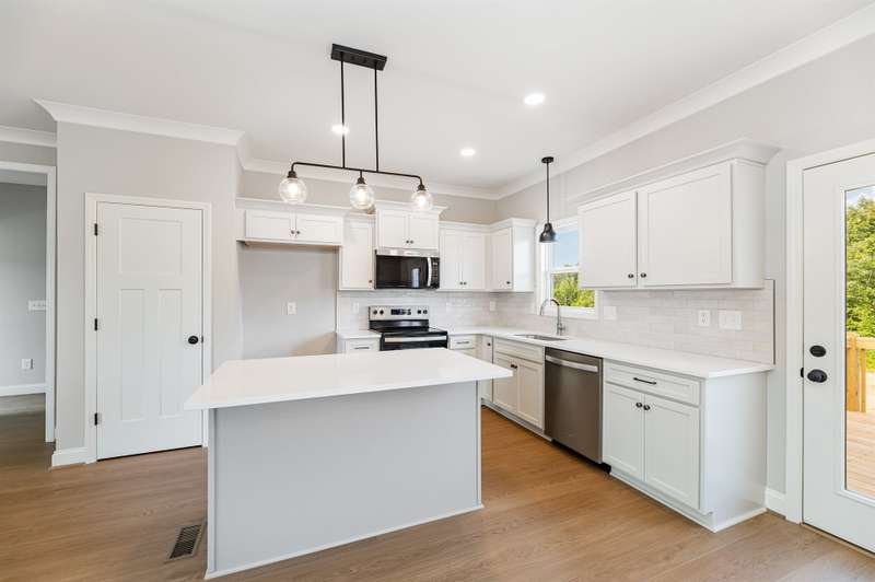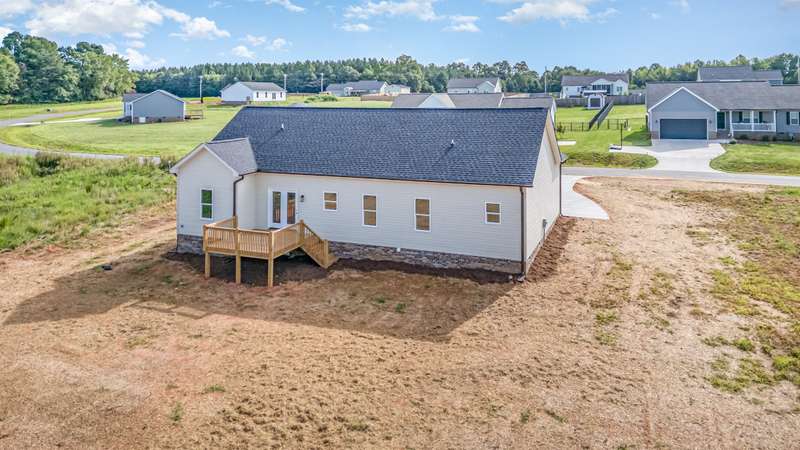 Come enjoy easy living in Stokesdale's newest community Knight Farm! This convenient location offers a country-like setting with easy access to Greensboro, Madison and Kernersville. This beautifully crafted custom home is built by Stafford Homes of the Triad. This one level home has everything you'll need: 3 beds/2 baths, split floor plan with oversized living room, primary suite boasting a huge walk-in closet & spa-like bathroom with double vanities and large walk in shower. The kitchen, breakfast area & living room all blend together to create a wonderful gathering space. Kitchen features include: gorgeous soft close door cabinets, quartz countertop, tile backsplash & Whirlpool stainless steel appliances. Full bath with secondary bedrooms on either side round out this fantastic layout. The best is yet to come when you step outside to the oversized deck to enjoy the expansive private wooded back yard! Deed Restrictions but no HOA dues. Hurry this home will not last long!