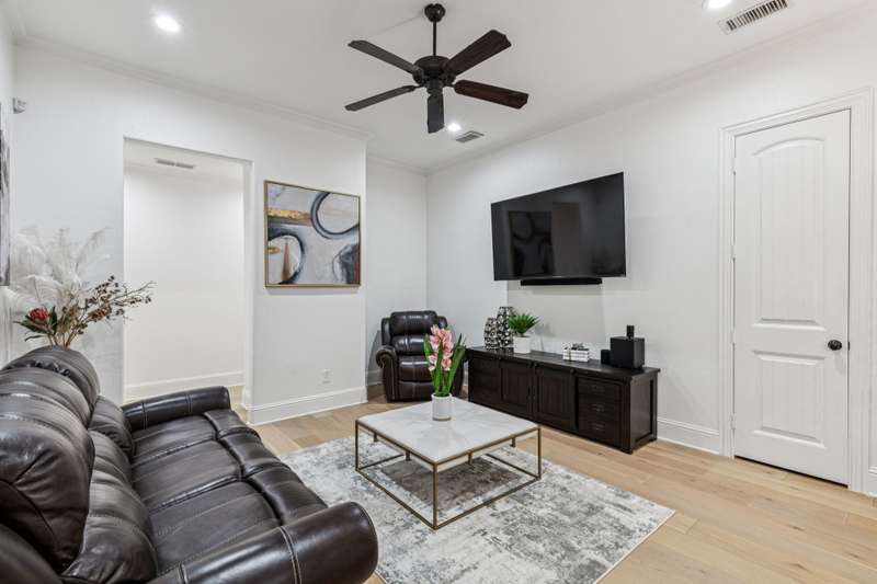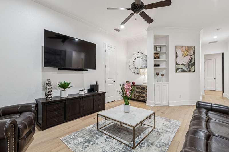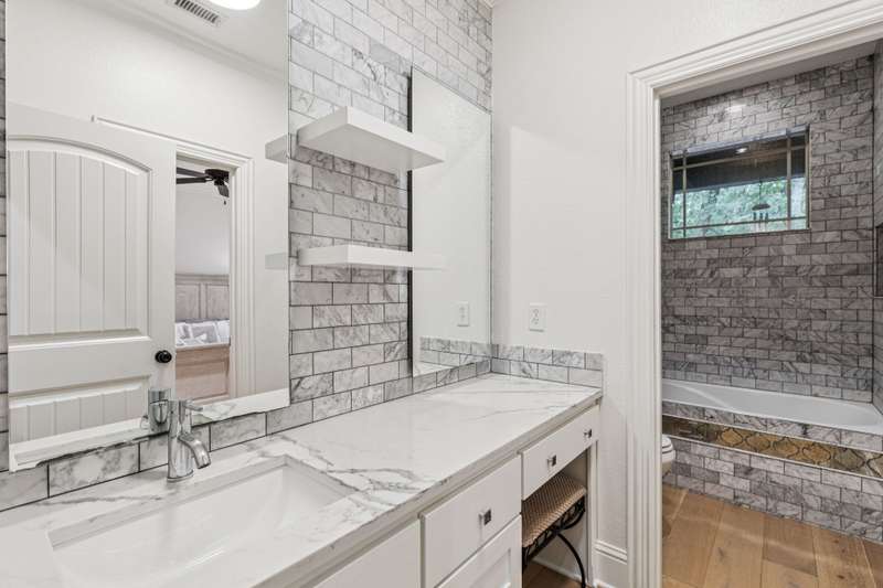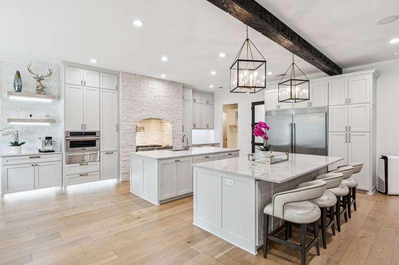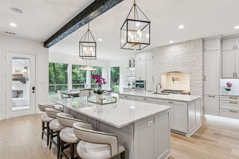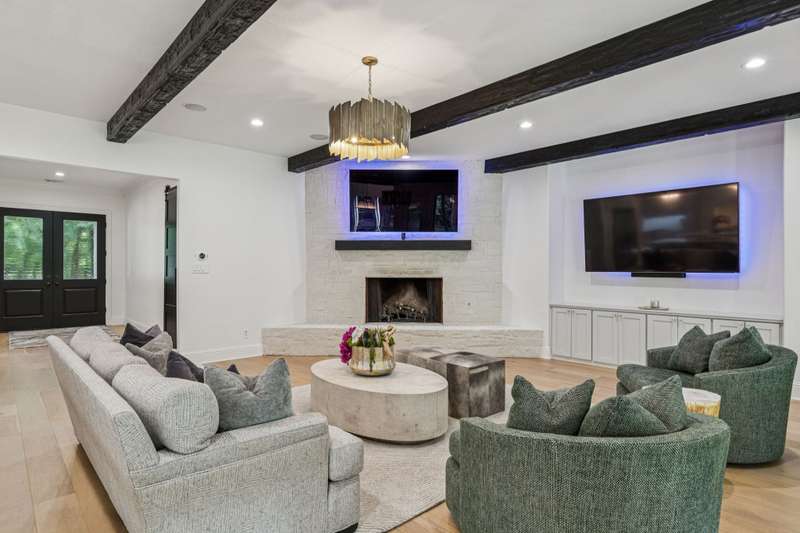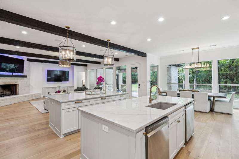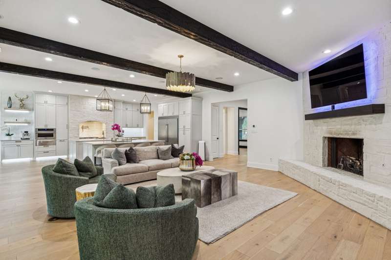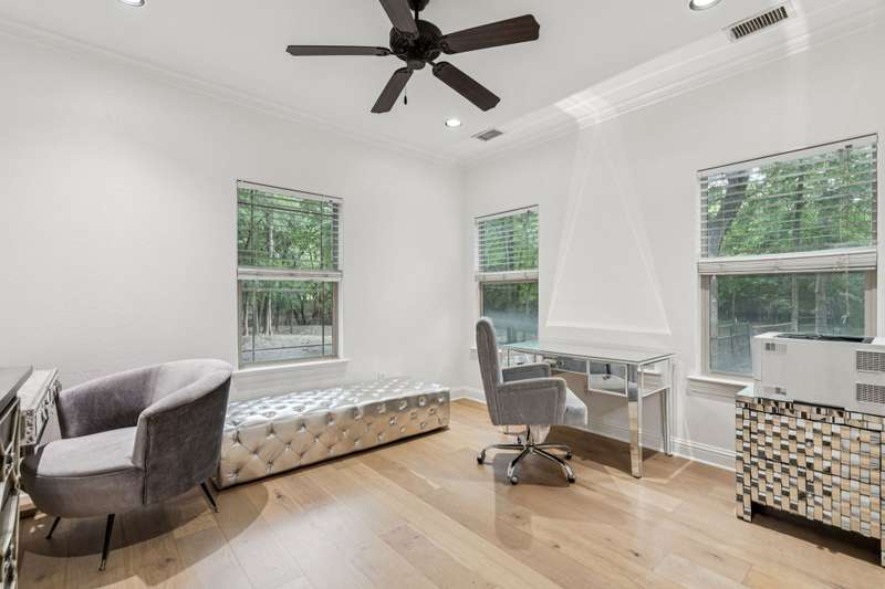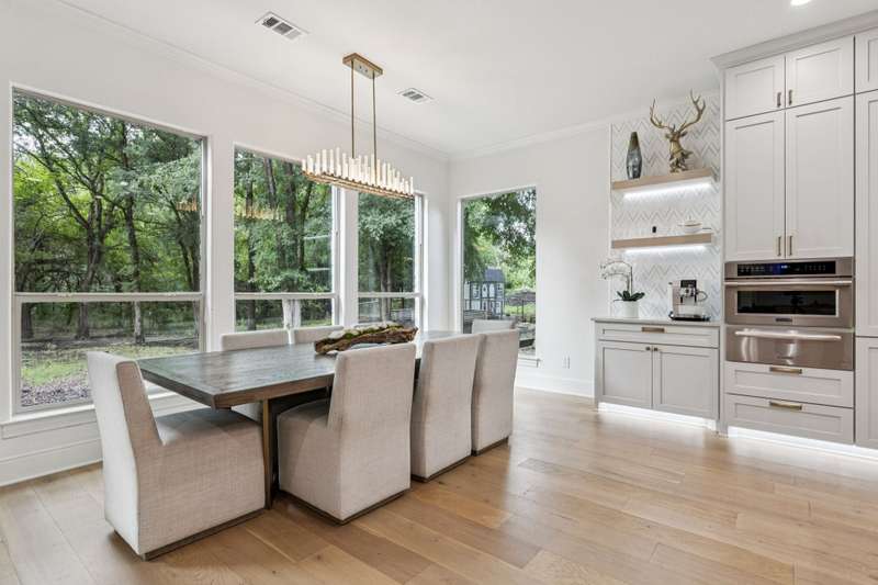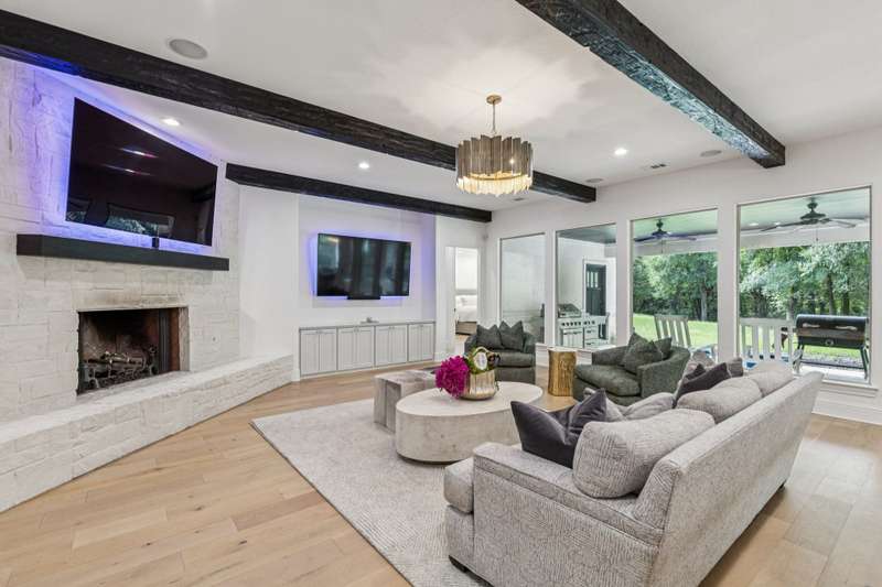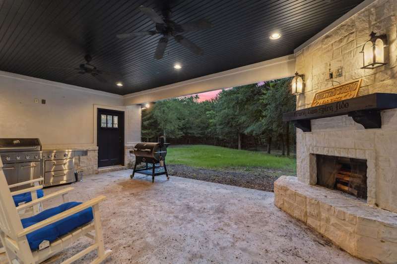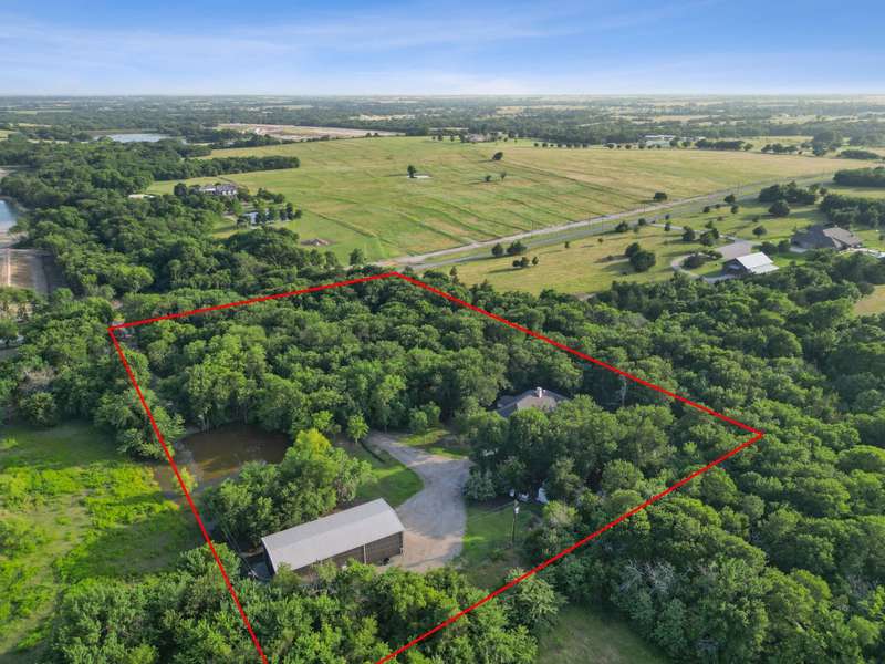 Nestled on 6 picturesque, wooded, Ag exempt acres in coveted Celina, this unique estate offers luxury living with rare versatility. A private drive leads to an elegantly reimagined home where custom finishes, open space, and peaceful surroundings create a truly special retreat. The kitchen is a showstopper, fully remodeled with soft-close cabinetry, two oversized quartzite islands, lime-washed stone range surround, built-in coffee bar with floating shelves and full marble backsplash, warm champagne bronze fixtures. Designer lighting and under cabinet floor level LED accents add an elevated ambiance. Waterproof wood floors run throughout, complementing exposed beams and large picture windows that frame views of the trees and outdoor living. The spacious living room features a whitewashed stone fireplace and dual built-in media walls. A dedicated study with built-in shelving conceals a hidden bonus room, perfect as a hobby space or secure storage. Outside, the options are endless. A large, insulated steel building is plumbed for water and wired for electric, ideal for a gym, RV or boat storage, workshop or build a barndominium. Power is never an issue with the 27 kw back-up generator. Starlink internet for reliable high-speed access. Springwell 3-Stage Water Purification system delivers crystal clear Well water. Small barn, chicken coop, pond, and seasonal creek all with no HOA and horse friendly. Enjoy the best of both worlds with acreage, privacy, and room to grow just minutes from Downtown Celina, all in acclaimed Celina ISD. This property blends elegant living with outdoor freedom. Your private Texas dream awaits.