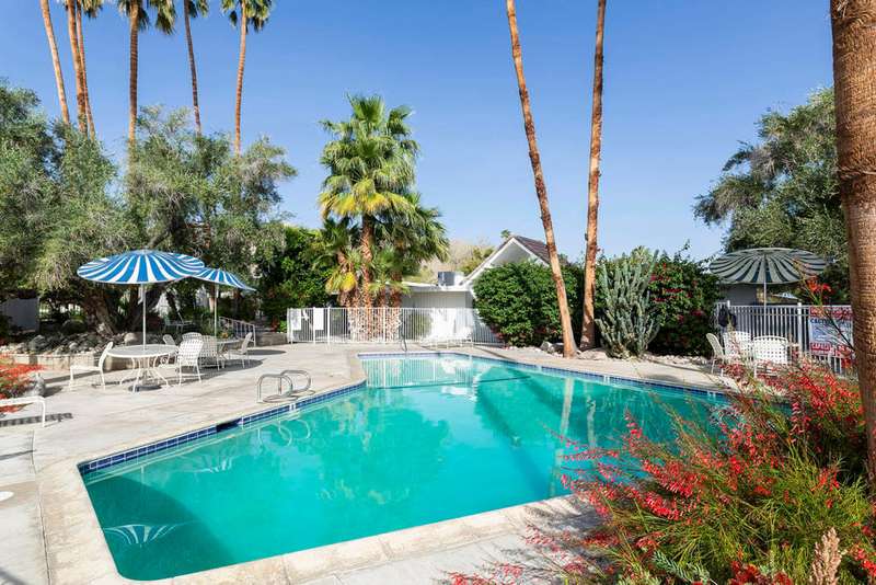 ATTENTION: MODERNISTS and PRESERVATIONISTS! Chalet Palms is calling. MID CENTURY GEM. BIG $25,000 price adjustment downward to allow you to bring your ideas, do some work, update some finishes and move in to this one of a kind mid century gem. Welcome to the one and only Chalet Palms community in Rancho Mirage. A wonderful mid century condo, believed to be designed in 1965 by Barry Berkus, nestled in the quiet and desirable Magnesia Falls Cove neighborhood. One of only 32 units, this home has many original features, some of which are awaiting your decorating touches. There is a very unique half bath off each bedroom feature (with a shower room in between). The largest bedroom, which opens to a large patio, features generous closet space. The second bedroom is off the Living Room and features pocket doors and two closets. This room is perfect as a den, office or bedroom. The living room/dining area is off a second patio. Steps away is the community pool and spa, mailboxes, and community laundry. The home has been freshly painted and has new carpet. The condo includes a reserved carport space. Trust Sale, property is AS IS. Please note: Some photos are Virtually Staged.