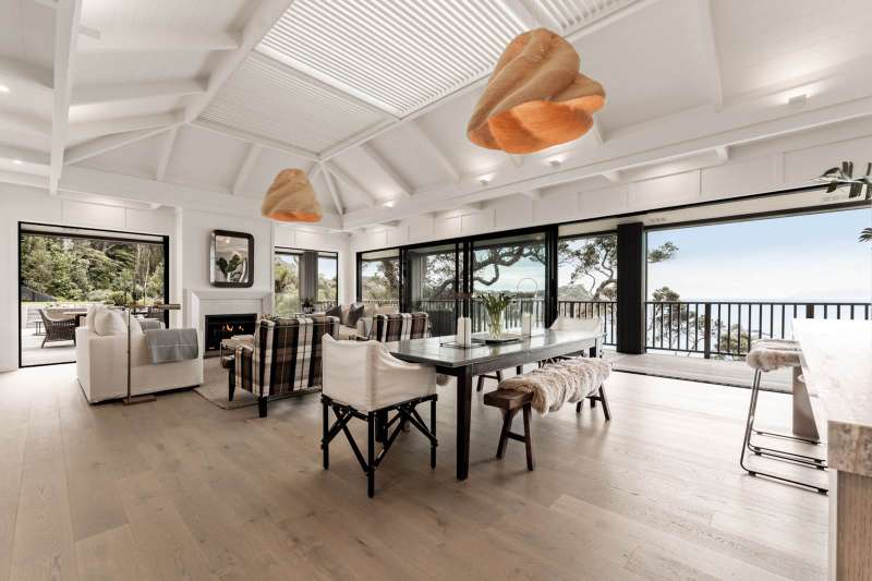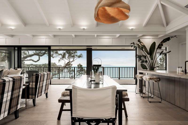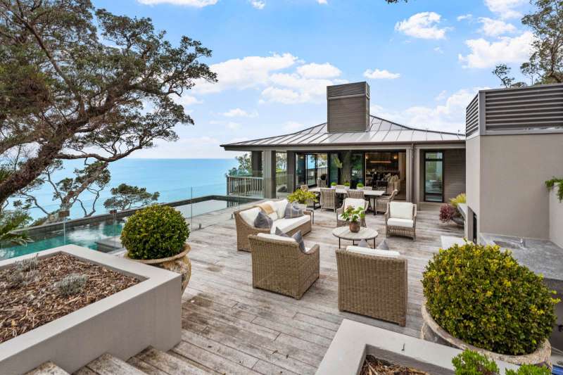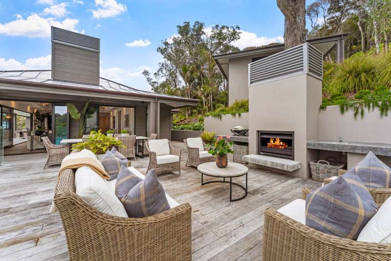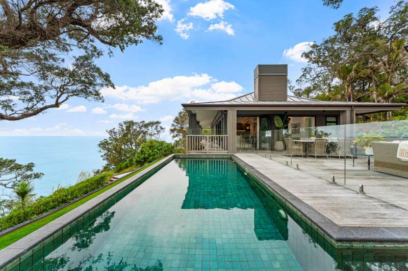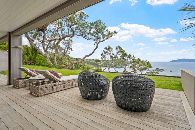 Commanding one of Ti Point’s most dramatic coastal headlands, this contemporary lodge-style home combines natural beauty with refined comfort - a rare sanctuary where everyday life feels like a holiday. Crafted from stone, cedar and glass, the residence sits perfectly within its landscape, surrounded by native bush and framed by panoramic ocean views stretching across Whangateau Harbour to Little Barrier, Great Barrier and the Coromandel beyond. It’s a place where whales and dolphins can often be seen from the terrace - a constant reminder of the extraordinary setting. Set on a large but low-maintenance parcel of land, the home is enveloped by covenanted native bush that ensures total privacy while remaining self-managing. The design brings the outdoors in, with wide terraces, generous glazing and open-plan living that invites light, sea air and the rhythm of the coastline into every room. Inside, the aesthetic is relaxed yet elegant - a sophisticated blend of lodge warmth and coastal calm. The main living area connects seamlessly with the outdoors, while a second lounge provides a quiet retreat for television or reading. There are four bedrooms in the main house, each designed for comfort and positioned to capture the view. A separate bunk room and detached studio provide ideal accommodation for guests, teenagers or staff. Practicality matches beauty, with ample garaging and on-site parking, all discreetly integrated into the landscape. A private cable car glides through the native bush to the water’s edge below, offering effortless access for swimming, kayaking or launching a small boat. Just minutes from Matakana Village and Omaha Beach, and around an hour from Auckland, this is coastal living at its most elevated - contemporary, calm and connected to nature. A home that feels luxurious yet entirely effortless. A true Coastal Icon. This is a Sole Agency listing by James Doole and Kellie Bissett. Contact us to view today.