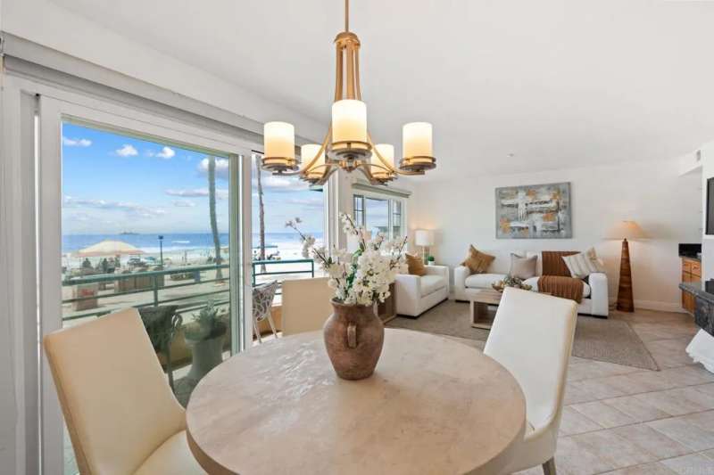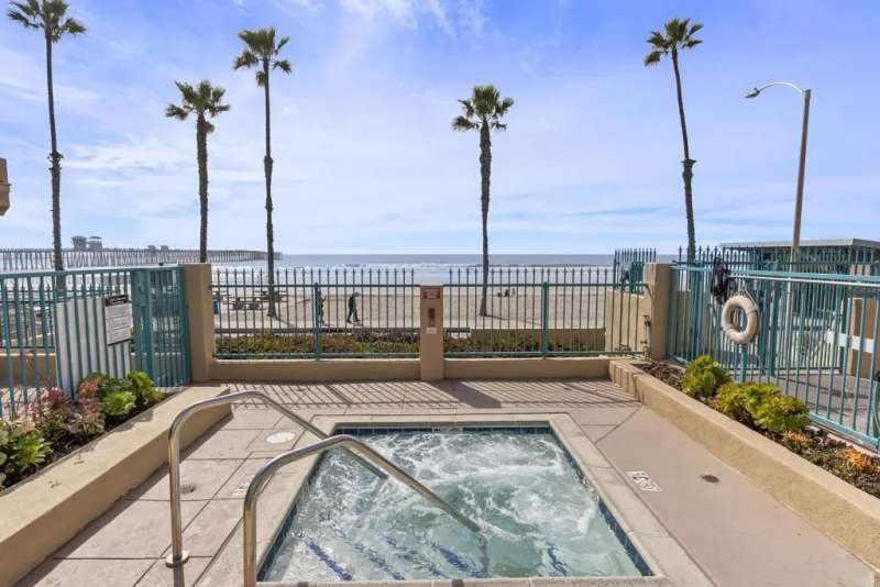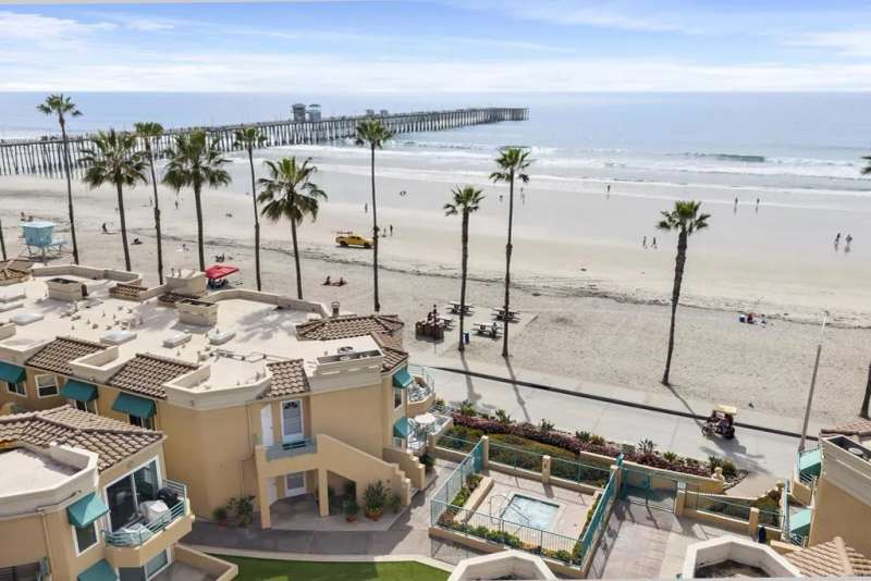 Experience breathtaking front-row coastal living at 400 N The Strand #27a beachfront gem in the coveted San Miguel III community. This rare ground-level unit offers no-stairs access, making beachside living both luxurious and effortless. Enjoy panoramic white water ocean views and the soothing sound of waves from the comfort of home! Inside, the condo features fresh paint and tastefully updated bathrooms, creating a clean and modern coastal vibe. The open-concept living space is filled with natural light and opens directly onto an ocean-view patioperfect for dining al fresco or soaking in the sunsets over the Pacific. As evening falls, take in the magical sight of the Oceanside Pier glowing against the night skyan unforgettable view right from your living room or patio. The spacious primary bedroom features a walk-in closet and dual sink vanity. Additional highlights include in-unit laundry, a cozy fireplace, and two assigned underground parking spaces in a gated garage with elevator access. Ideally located just a short stroll from the Oceanside Pier, marina, and vibrant downtown, this home puts you steps away from Oceansides best dining, coffee shops, and boutique shopping. San Miguel III is a well-maintained beachfront community featuring two spas, beautifully landscaped grounds, and multiple access points to the sand. Whether you're looking for a peaceful beachfront escape or an unbeatable location to enjoy all that Oceanside has to offer, this is your chance to own a front-row seat to Southern Californias iconic coastline.