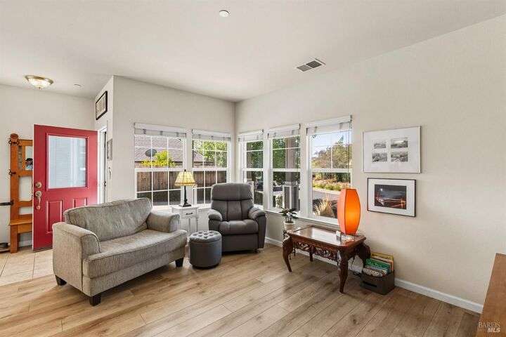 Step into a peaceful retreat in the highly desirable Parkland Farms neighborhood, where a welcoming front porch and low-maintenance yard set the tone for easy living. The backyard offers a zen escape with serene views of the Palomino Hills, with nearby access to hiking trails through the Healdsburg Ridge Open Space Preserve. Inside, the main floor features an open-layout with LVP flooring, a half bath, and a convenient laundry room, while upstairs are three bedrooms and two full bathrooms, creating a comfortable, functional space for everyday life. A long driveway provides plenty of parking, and quiet streets and a strong sense of community make this neighborhood truly sought-after.