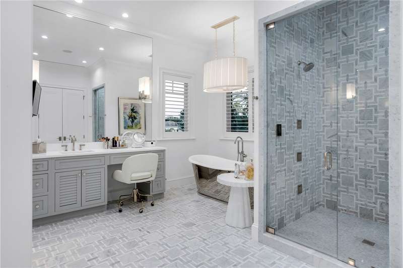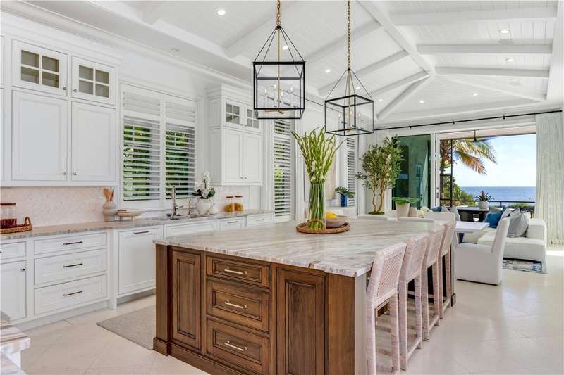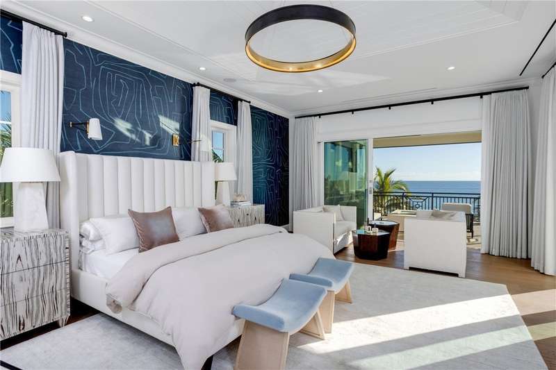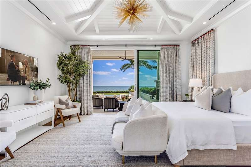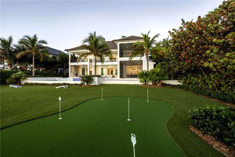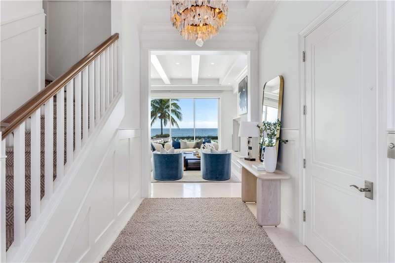 Discover luxury oceanfront living on 1.09 elevated and secluded acres with 104' of beach frontage. Built in 2016, this 5BR/5.4BA coastal estate has dual primary suites, private guest suite, gourmet kitchen, custom office, SAVANT system, custom bar, elevator and laundry rooms on both floors. Effortless outdoor living from breezy terraces, resort-style pool/spa, summer kitchen, putting green, meticulous landscaping, 4 car garage, gated drive and seawall. Near Moorings Yacht Country Club, marina. Miles from public beach access. Partial staging by Vesta Homes-furniture available for purchase.
