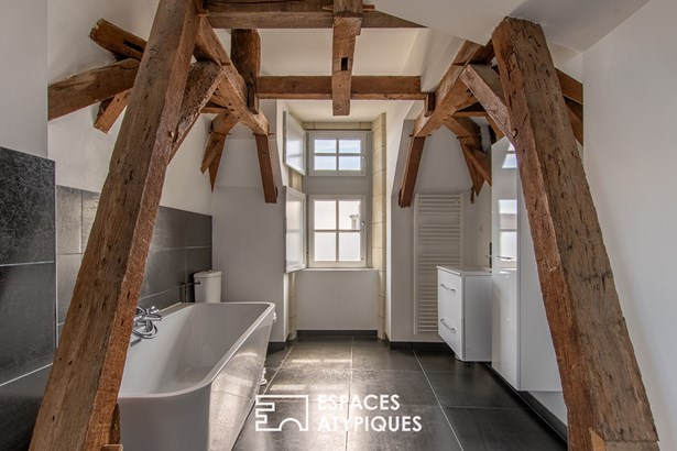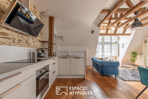 Located in the highly sought-after Doutre district of Angers, this apartment is on the 2nd floor of a characterful 18th-century mansion. It is spread over two levels, with a total surface area of 75 sqm.