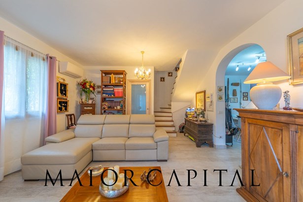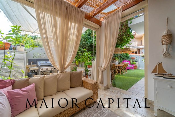 This semi-detached villa, recently built and completely renovated with modern finishes, offers a private garden on two sides, adorned with ornamental plants and bougainvillea, creating an atmosphere of peace and tranquillity. The spacious covered veranda is an ideal area for both relaxation and outdoor fitness sessions, allowing you to enjoy the outdoor space at any time of day.
