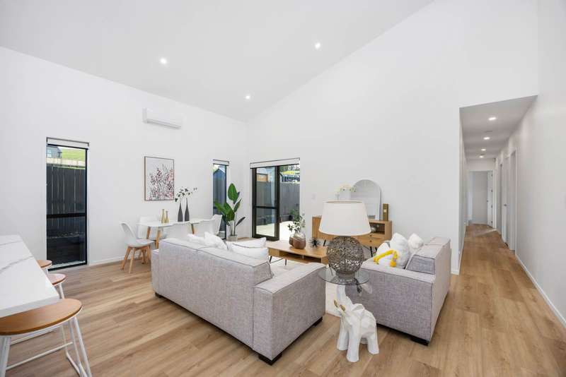 Step inside and instantly feel at home in this beautifully crafted, brand-new residence where modern comfort meets effortless living. From the moment you walk through the door, you’ll be welcomed by a space designed to elevate everyday life, offering the perfect balance of style, practicality and warmth. Picture yourself in the heart of the home, a spacious, light-filled open-plan living and dining area with striking high ceilings that create a sense of openness and airiness. Slide open the doors and extend your living space onto a generous sun-drenched deck, ideal for morning coffees, relaxed evenings and memorable gatherings with family and friends. Here, indoor-outdoor living flows naturally, making every day feel special. This thoughtfully designed layout provides a well-proportioned master suite and three double bedrooms, giving you flexibility whether you’re a growing family, working from home, or simply love to host overnight guests. With an ensuite, a full family bathroom and a separate guest toilet, everyone’s comfort and privacy are assured. Enjoy the ease of low-maintenance grounds and contemporary finishes throughout, so you can spend more time doing what you love. The secure single garage and additional off-street parking offer convenience for busy households and visitors alike. Become part of the vibrant Warkworth Ridge community, a peaceful, newly established neighborhood just minutes from the heart of Warkworth, local supermarkets and the renowned Matakana wine and market region. Here, you’ll enjoy a lifestyle that combines tranquility with easy access to everything you need. Whether you’re downsizing, upgrading, or finding your very first home, this property delivers a harmonious blend of modern design, comfort and everyday ease, ready for you to make it your own. This is your invitation to experience fresh, single-level living in one of Warkworth’s most exciting new communities. Contact us today to arrange a viewing and discover the effortless lifestyle that awaits you.