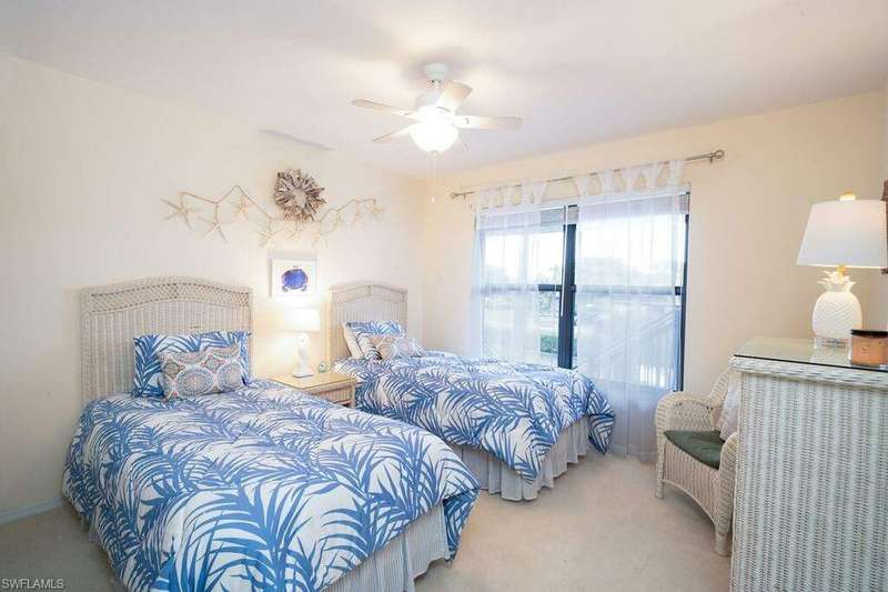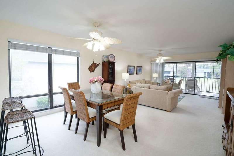 This Lovely, spacious 2-bedroom, 2-bath END UNIT w/Dinette area off the Kitchen. IS sure to impress the moment you arrive! Beautifully, updated kitchen boasts granite countertops, tiled backsplash, and custom cabinets with pullouts and soft-close drawers, blending style and functionality. The open floor plan creates a bright, welcoming atmosphere. The guest bathroom has been refreshed with a new vanity and toilet. Pocket door adds privacy to the guest area, perfect for visitors. Plank vinyl flooring in entrance, Dinette area and Kitchen. Traine 2.5 ton A/C estimated 1 yr young. The home also includes both electric and manual hurricane shutters on the lanai and dinette window for added security during storms. Entertain on your large lanai offers space for relaxation and extra storage. Enjoy easy access to the community pool for swimming and socializing. The unit is close to Naples' beautiful white sandy beaches, downtown 5th Avenue, and Mercato, making it easy to enjoy the best the area has to offer. The nearby Berkshire Commons Shopping Plaza has everything you need, including Publix, Walgreens, restaurants, and ice cream shops, all just minutes away. Bring your family and start making new memories today!
