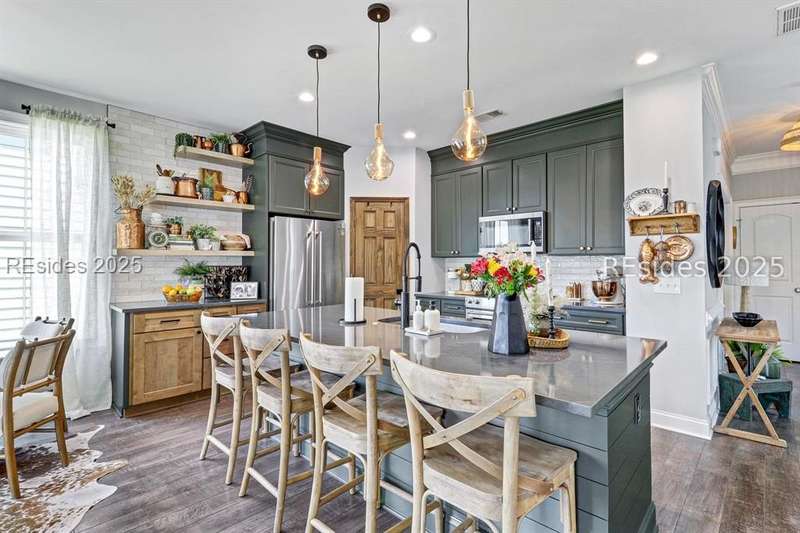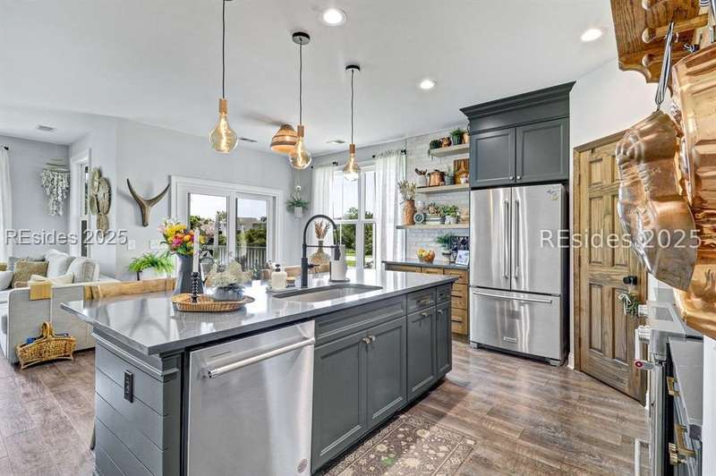 Wake up to breathtaking views in this beautifully designed home featuring 3 bedrooms and 2.5 bathrooms. Enjoy access to a community day dock, perfect for kayaking or sunset watching. The oversized, insulated 3+ car garage offers ample storage and workspace, while the fenced backyard features a spacious patio and a large back porch/deck for entertaining. Inside, the open-concept main level showcases a bright, updated kitchen with quartz countertops, new KitchenAid appliances, a pantry, and stylish finishes, along with a dining area, great room, and an office/library with a private balcony, plus a covered Trex deck. Upstairs, the owners suite offers a private deck and a stunning, newly renovated bathroom complete with a tiled shower, modern fixtures, dual vanities, and a soaking tub. Two guest bedrooms share a full bath and convenient laundry room.This home shows like a model, with thoughtful updates and attention to detail at every turn.