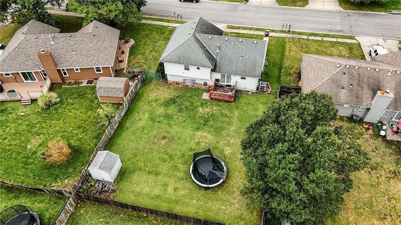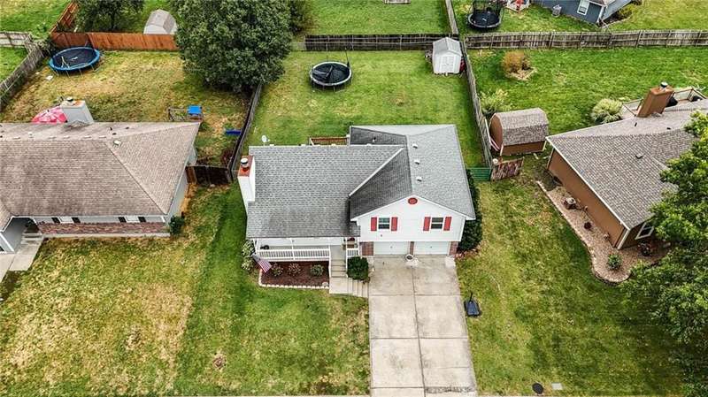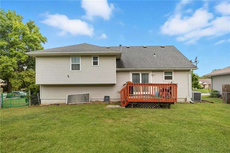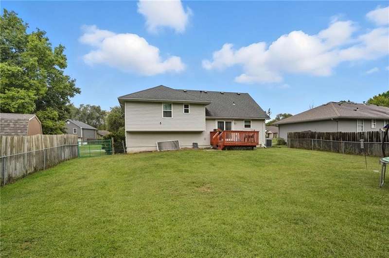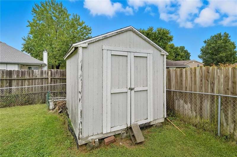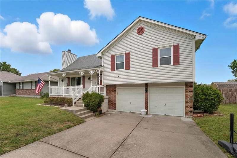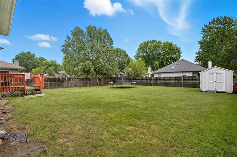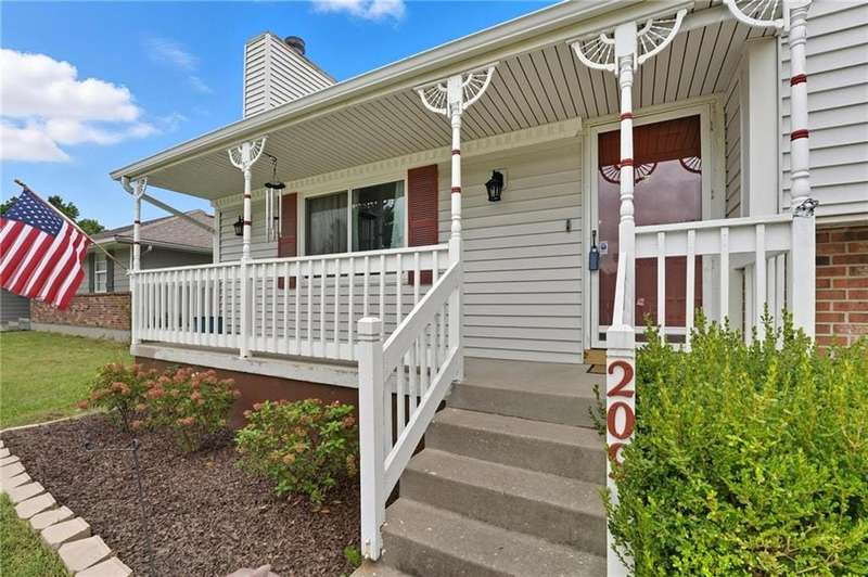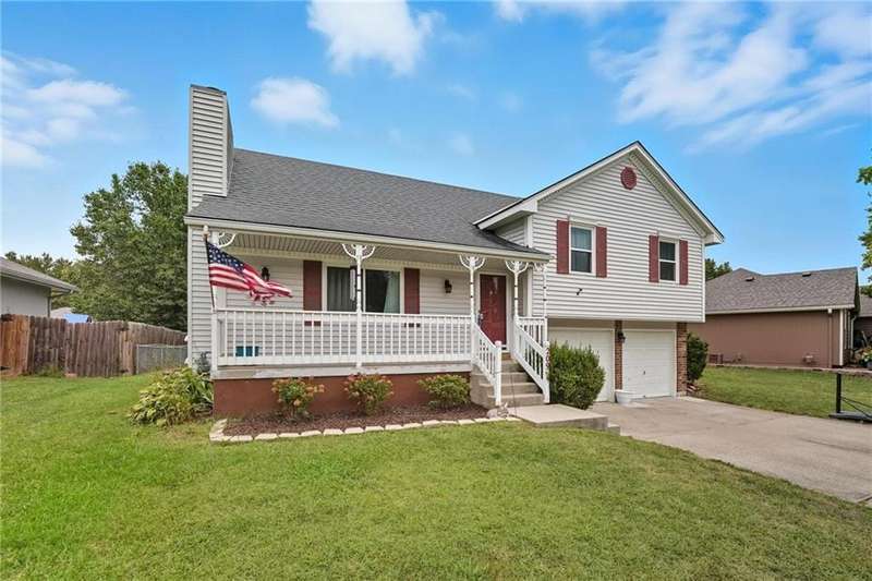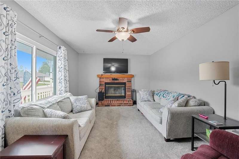 True 4-bedroom home thats completely move-in ready! Step inside to an open kitchen with updated countertops and a spacious living room centered around a cozy masonry fireplace. Large master suite with full bath, new carpet and interior paint throughout. Finished basement with private office and 3/4 bath along with added security of a storm shelter. Outside, enjoy a large backyard with a storage shed, low-maintenance siding, and covered front porch. Conveniently located within walking distance to both the elementary and high school, plus direct neighborhood access to the updated Blue Branch Trailperfect for evening walks without the drive