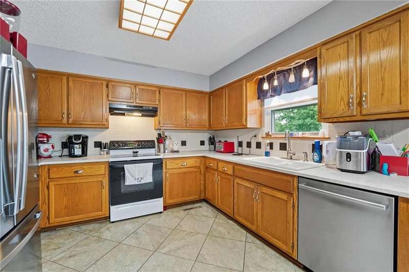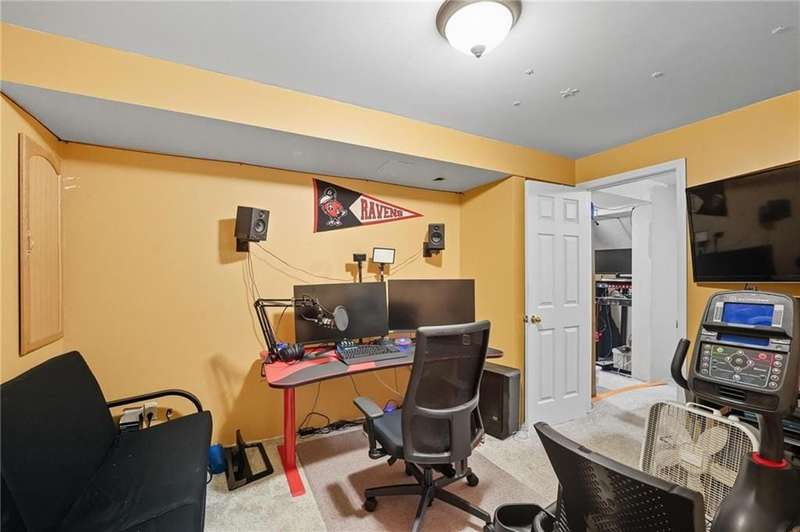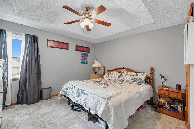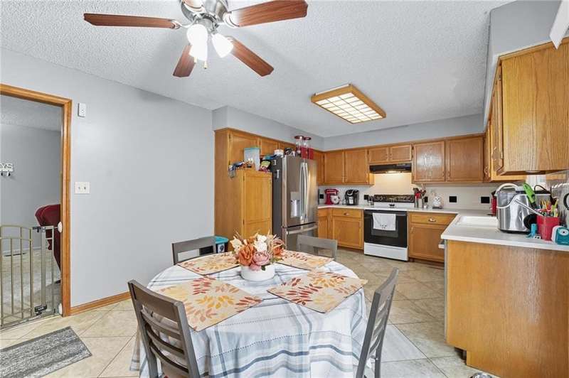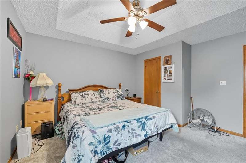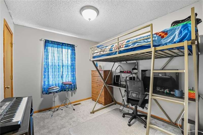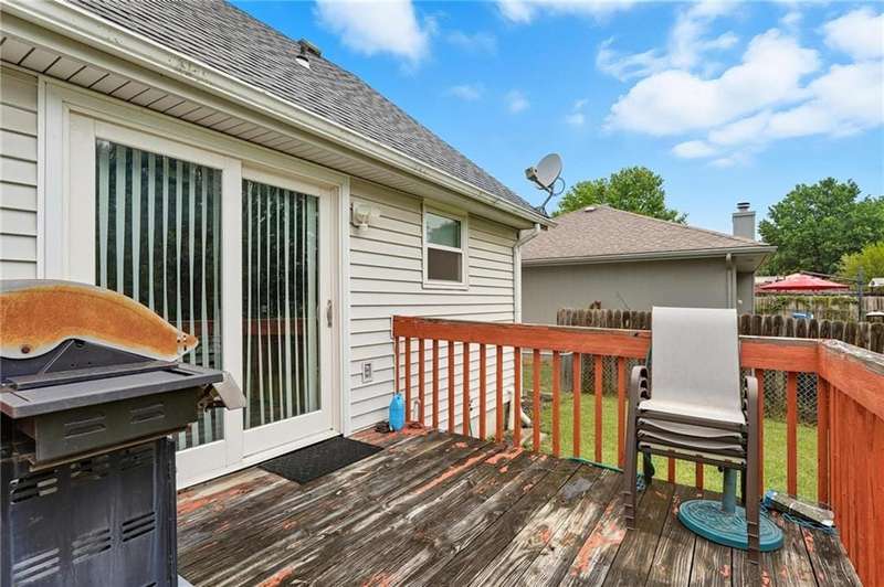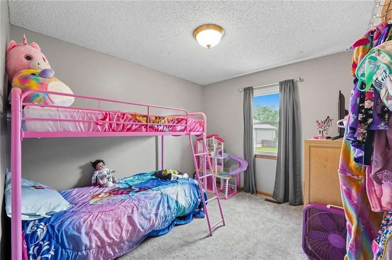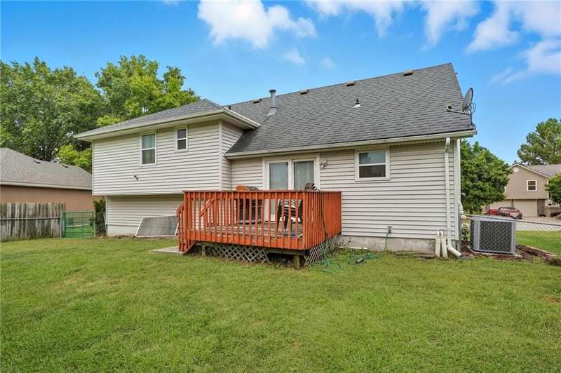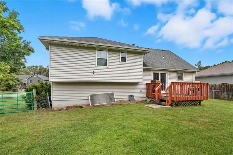 True 4-bedroom home thats completely move-in ready! Step inside to an open kitchen with updated countertops and a spacious living room centered around a cozy masonry fireplace. Large master suite with full bath, new carpet and interior paint throughout. Finished basement with private office and 3/4 bath along with added security of a storm shelter. Outside, enjoy a large backyard with a storage shed, low-maintenance siding, and covered front porch. Conveniently located within walking distance to both the elementary and high school, plus direct neighborhood access to the updated Blue Branch Trailperfect for evening walks without the drive