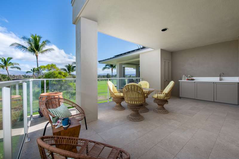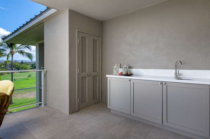 Step out to the expansive 384 sq. ft. covered wrap-around lanai, a hallmark of Vista Waikoloa living. From here, enjoy panoramic views of the Kohala Mountains, soft ocean glimpses, the Waikoloa golf course, and the first glow of sunrise over Mauna Kea. Whether it’s morning coffee or evening pau hana, this lanai was made for unwinding.