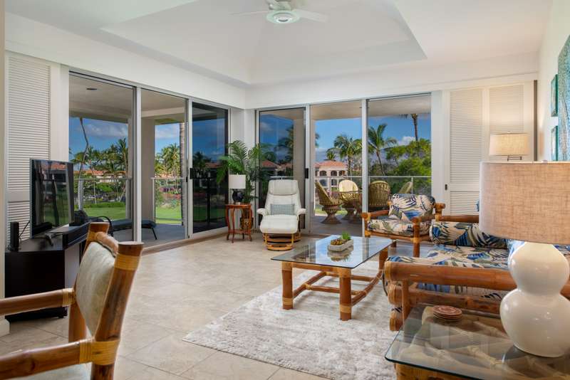 Meticulously maintained and thoughtfully upgraded, this third-floor residence features modern finishes, tile flooring, and wide sliding doors that frame the swaying palm trees and golf course views. The open-concept layout welcomes natural light and cooling trade winds, while the 2020 air-conditioning system keeps things comfortable year-round.