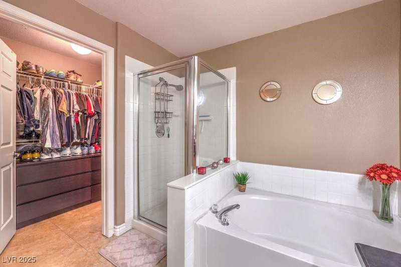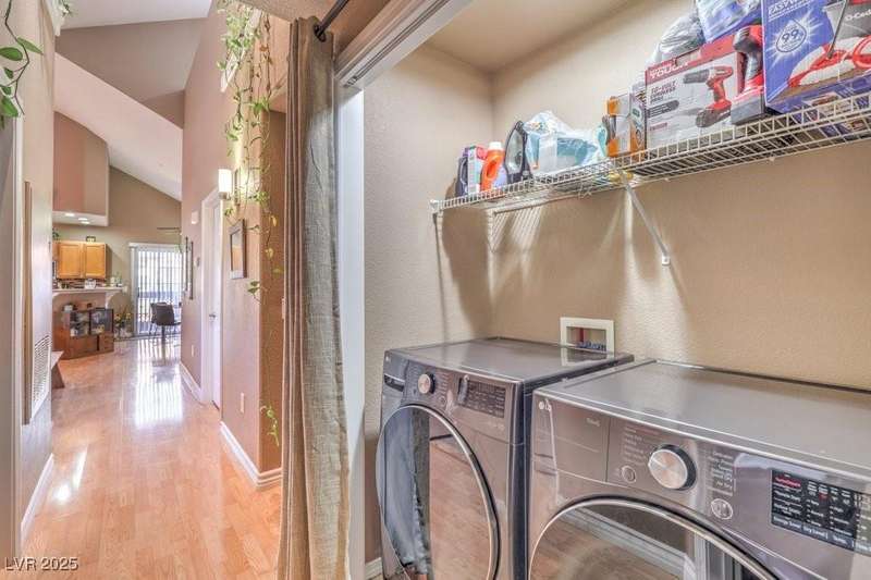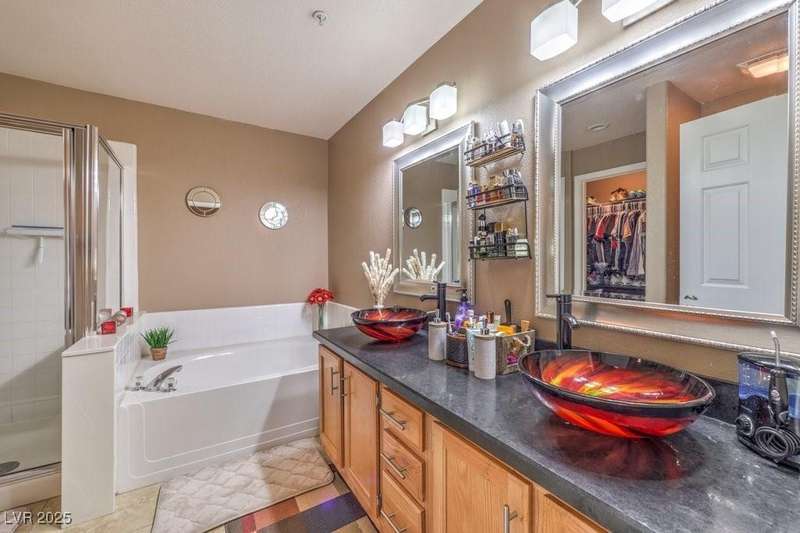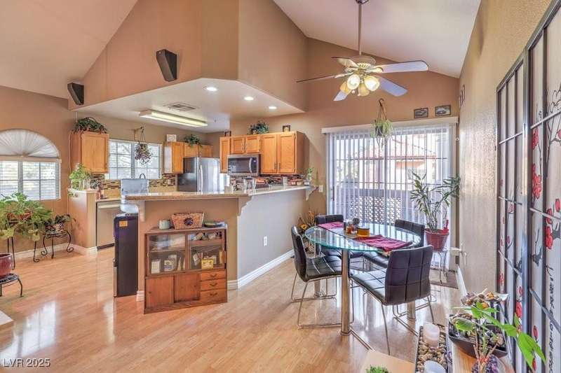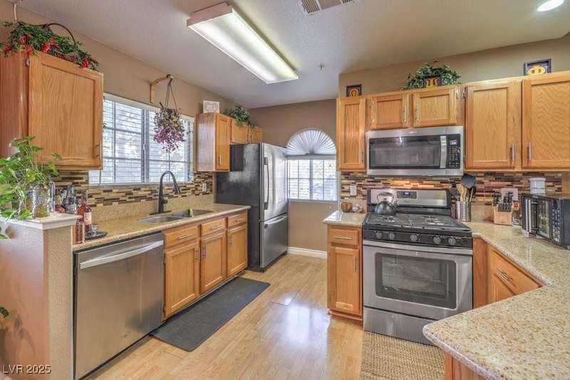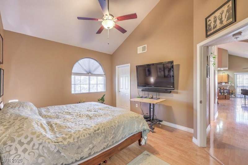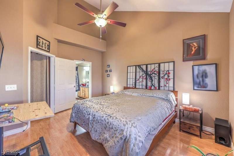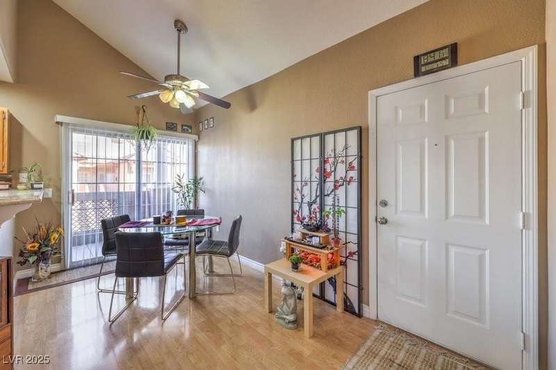 Wonderful 3 bed 2 bath condo with bright open floor plan, vaulted ceilings, and GARAGE. The kitchen has ample cabinets and countertops with breakfast bar and stainless steel appliances. This primary bedroom is downstairs with a large ensuite including duel sinks and soaking tub and separate shower. Located in a gated community lots of amenities near the 215. Come see today!