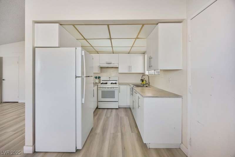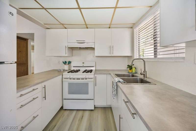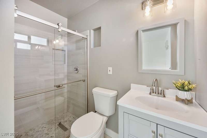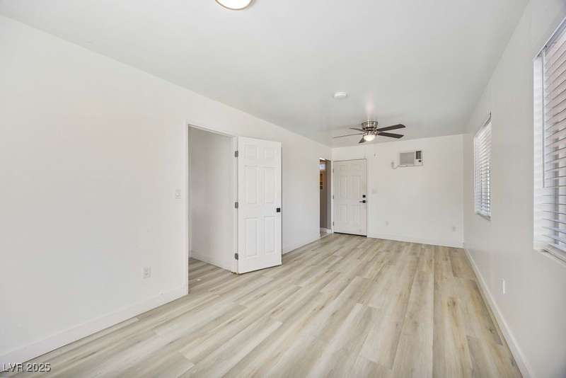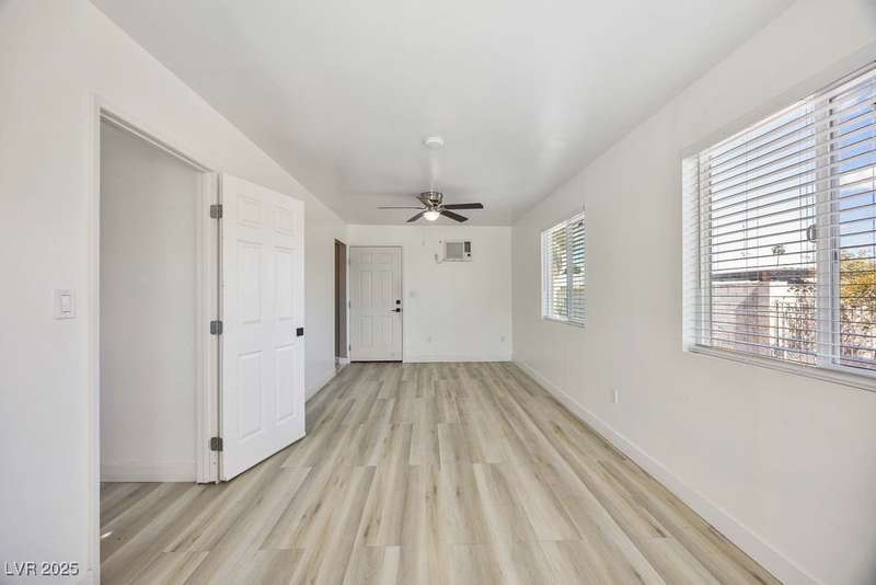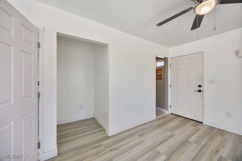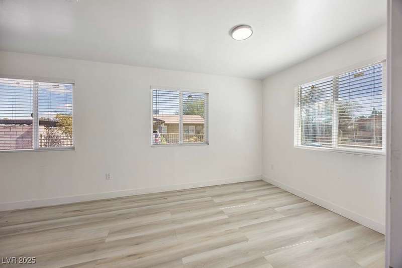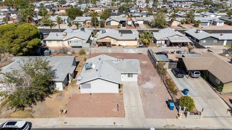 NO HOA with INCOME POTENTIAL! This versatile single-story home offers 1,220 sf. of potential on a spacious 6,000+ sq ft lot. Originally a 2-bed, 1-bath layout, it now features a large 3rd bedroom and 2nd bath with a private entrance—perfect for a guest suite, rental, or home studio. New cabinets & bathroom vanities, mirrors, flooring, faucets, blinds, and fresh exterior paint already in place. The backyard and large side lot offer endless possibilities—room for a pool, garage, ADU, RV/boat parking, and more. Located in Spring Valley, this home is walkable to grocery stores, restaurants, and amenities, with bus stops nearby. By car, it's 5 min to the hospital and less than 15 min to The Strip, Durango Station, and big-box retail stores (Home Depot, Costco, Sam's Club, Ikea, etc.) The central location, flexible layout, and no HOA restrictions make this a rare opportunity for customization and value. With just a little TLC, this home can truly shine!