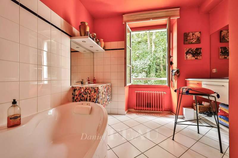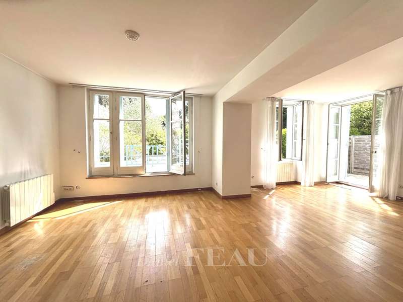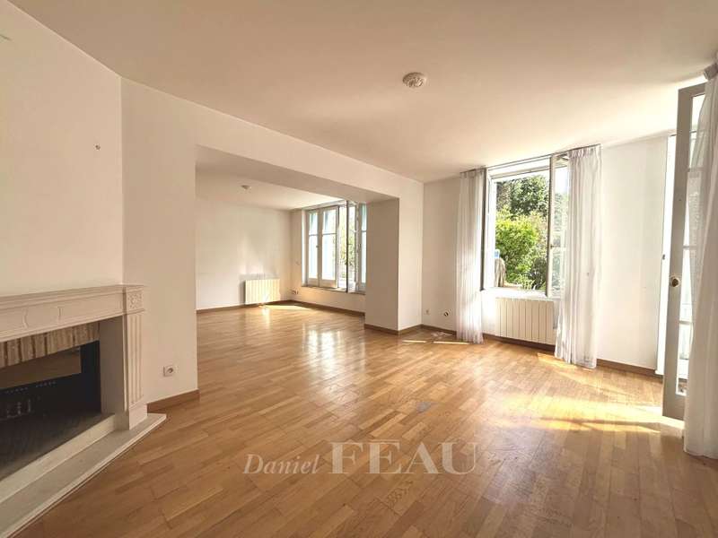 Under five minutes by foot from the station and 2 minutes from the chateau and park, this split-level 94 sqm garden level apartment in a late 19th century buildng includes a 41 sqm living/reception room opening onto leafy greenery, a kitchen, a bedroom (it would be possible to create a bathroom and a dressing room), and a guest wc with a washbasin. Upstairs are a suite with a bedroom, a bathroom, dressing room and a separate wc. Refurbishment is required to exploit the full potential. With a basement parking space and a cellar benefiting from lift access.