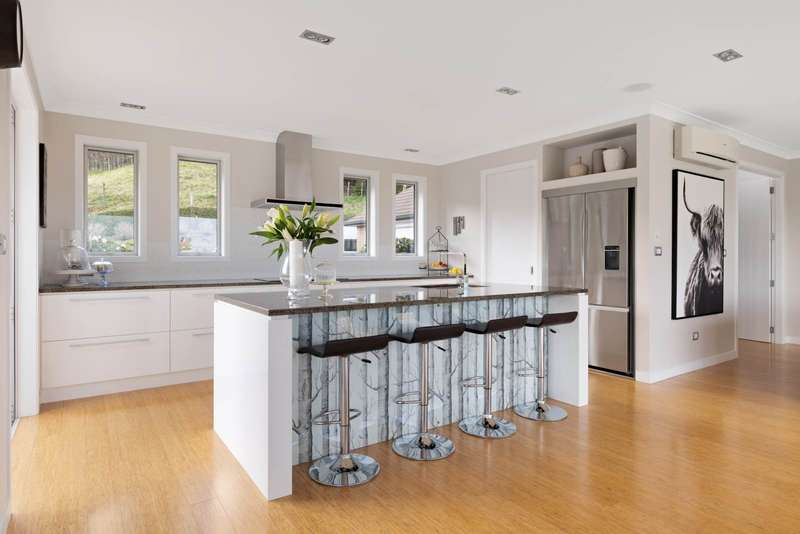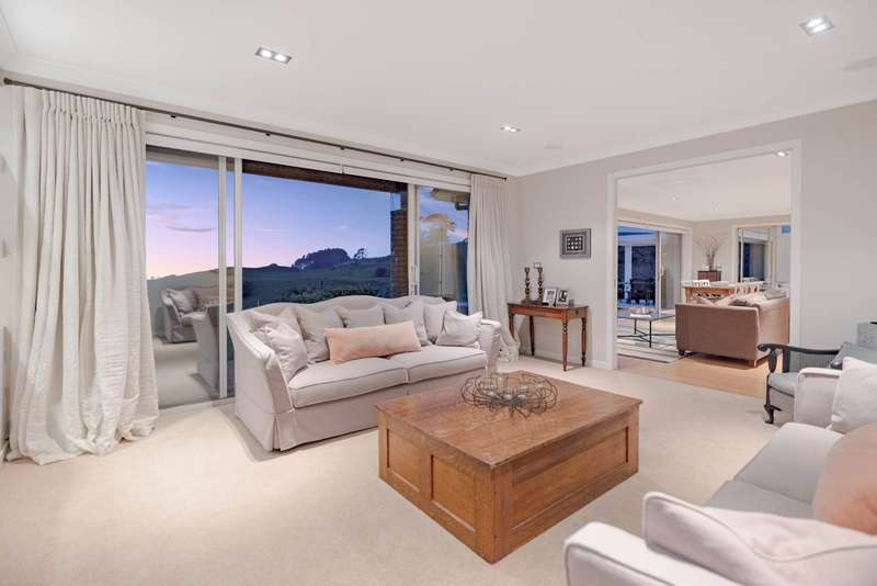 Located in the tranquil hills of Minden, this elegant brick and tile residence offers stunning views over the sparkling waters of the Bay of Plenty and the iconic Mount Maunganui. Designed with both sophistication and comfort in mind, the home provides a perfect sanctuary for those seeking luxury and tranquillity. Inside, four generously sized bedrooms and three beautifully appointed bathrooms ensure ample space for family living and privacy. High stud ceilings and expansive windows flood the interiors with natural light, creating a warm and inviting atmosphere throughout. The modern open-plan kitchen, dining, and family areas form the heart of the home and flow seamlessly into a separate lounge nicely appointed around its own gas fireplace, making it ideal for both entertaining guests and relaxing with loved ones. Step outside to a covered alfresco seating area, complete with an outdoor fireplace, offering the perfect space for year-round enjoyment and gatherings alongside a separate outdoor covered dining area. Additional features include dedicated parking for a boat or caravan alongside extra off-street parking, catering well to a busy lifestyle. Surrounding the home are well designed gardens that enhance the property’s appeal and provide a peaceful, picturesque setting. This residence perfectly balances modern design with the natural beauty of its surroundings, presenting an elegant lifestyle opportunity in one of Tauranga’s most sought-after suburbs.