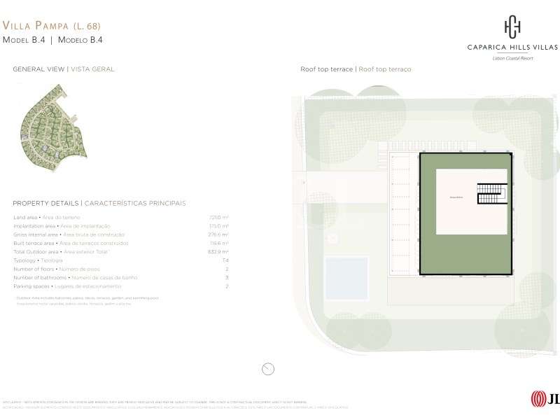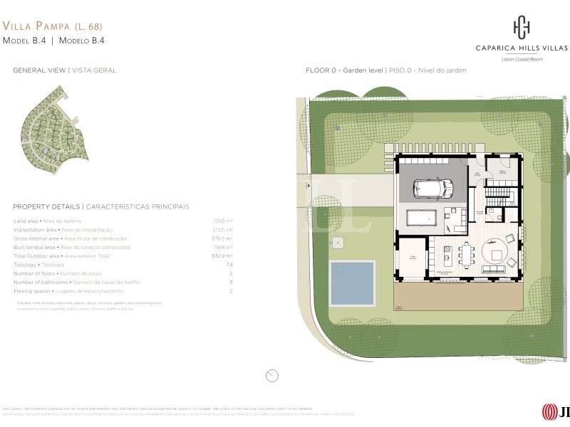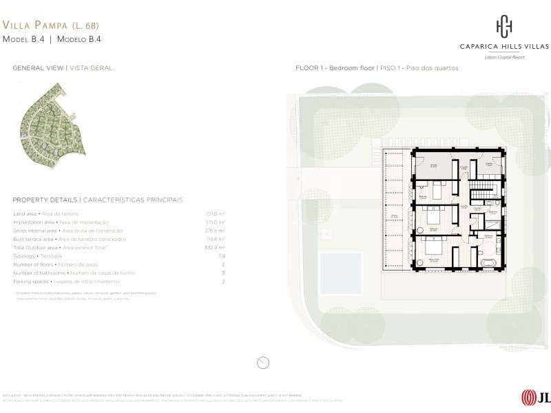 Moradia T4 nova com 277 m2 de área bruta de construção, jardim e piscina privativos, no Caparica Hills Villas, na Costa da Caparica. As unidades do Caparica Hills Villas oferecem garagem privativa, elevador, amplas zonas de lazer e espaços de arrumação. A construção incorpora elementos sustentáveis como painéis de madeira, coberturas ajardinadas e vegetação local, garantindo eficiência energética e conforto durante todo o ano. O empreendimento integra-se num resort completo que inclui o Hotel IHG Crowne Plaza Caparica Lisbon, instalações de bem-estar com spa, fitness club e estúdio de yoga, um campo de golfe de 9 buracos e uma zona comercial com 20 lojas boutique. Nos planos futuros estão previstos um centro desportivo e uma escola. A localização do Caparica Hills Villas combina tranquilidade e conveniência: a 5 minutos do mar, a 15 km do centro de Lisboa (15 minutos de carro) e próximo do aeroporto principal. Para compras diárias, o supermercado encontra-se nas imediações. O Caparica Hills Villas representa uma proposta de valor equilibrada para quem procura um investimento imobiliário ou residência numa das zonas de maior potencial de valorização da Grande Lisboa, conjugando proximidade à capital com a qualidade de vida junto ao mar. Categoria Energética: A #ref:90873