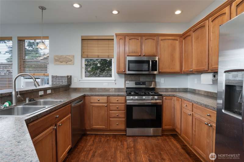 Beautiful 4 bedroom, 2.5 bath, 2,438 sq ft home in sought-after Fairway Point near Fort Nugent Park. The open concept design showcases a gourmet kitchen with stainless appliances, spacious dining area, and cozy gas fireplace. Sliding doors open to a fully fenced backyard with deck, perfect for entertaining or relaxing. The main level offers a office/den, mudroom, laundry hookups, and half bath. Upstairs, the luxurious primary suite features a 5-piece bath and walk-in closet, plus three additional bedrooms and a versatile bonus room. With a covered front porch, stylish finishes, and easy access to the community park, this move-in ready home blends comfort, space, and convenience.
