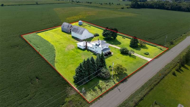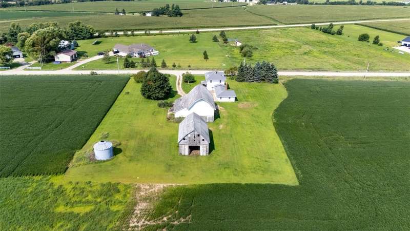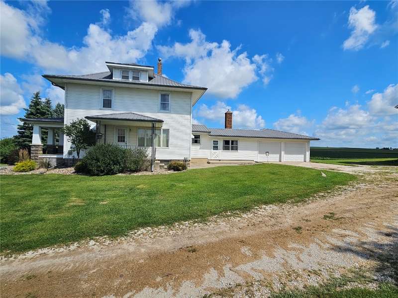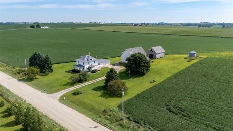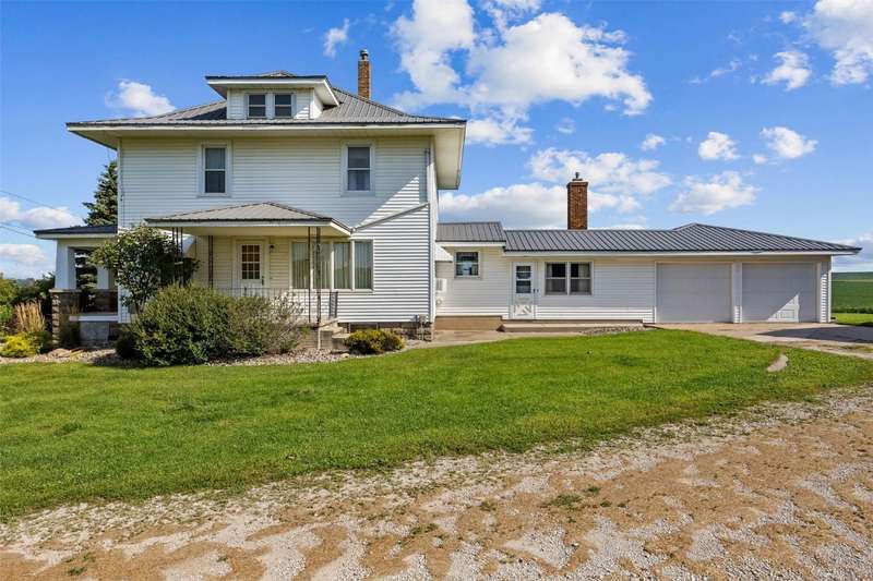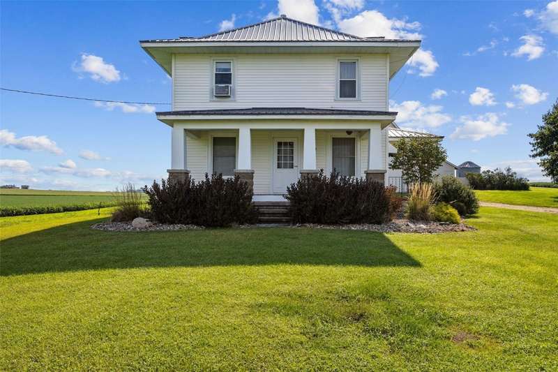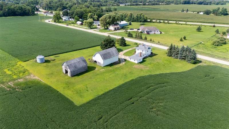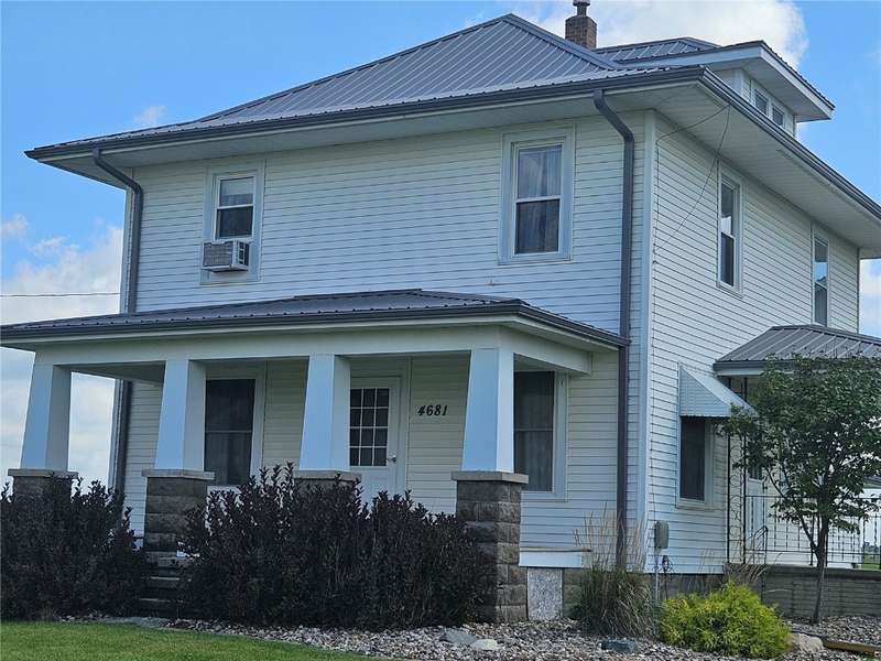 Welcome to 4681 Heins Rd a charming property set on just over two acres. The home features a brand-new steel roof, along with updated gutters and downspouts. The traditional farmhouse design includes a covered front porch, just add the porch swing and a two-car attached garage. Upstairs, there are three bedrooms and a spacious bathroom, with well-preserved original hardwood floors ready for refinishing. The main floor boasts a large kitchen, formal dining room, family room, and a convenient laundry area. The breezeway connecting the house and garage has a gas fireplace and serves as a perfect drop zone. The electrical system has been upgraded to a breaker box. Additional outbuildings include the original barn, a corn crib, and a grain bin, which could be transformed into a unique patio or binzebo. This property is being sold "as is," with inspections for the buyer's reference only. Some photos virtually staged