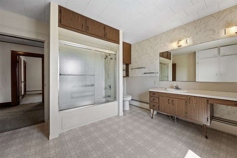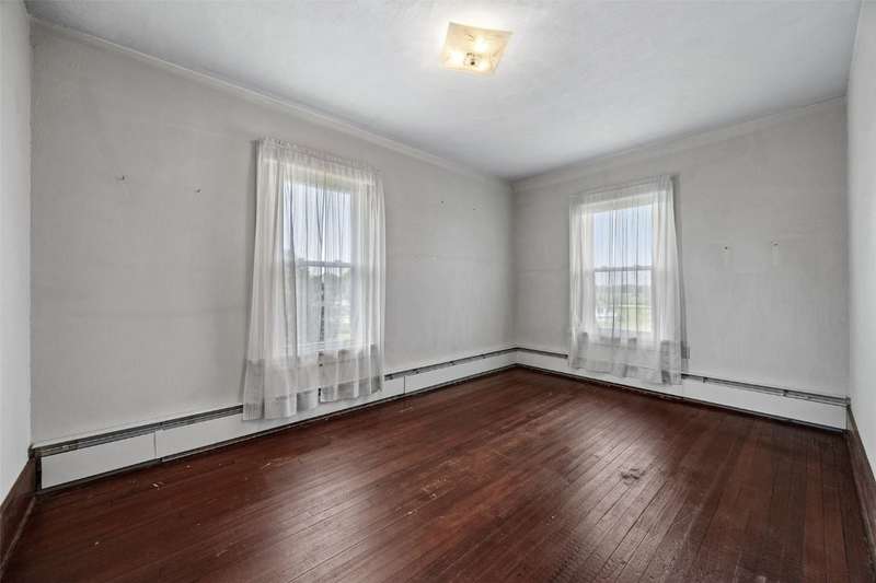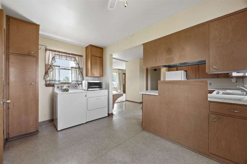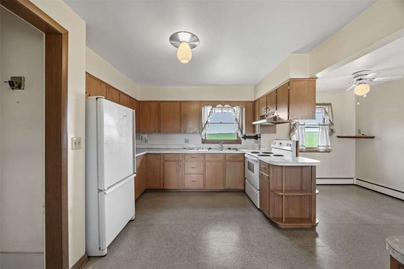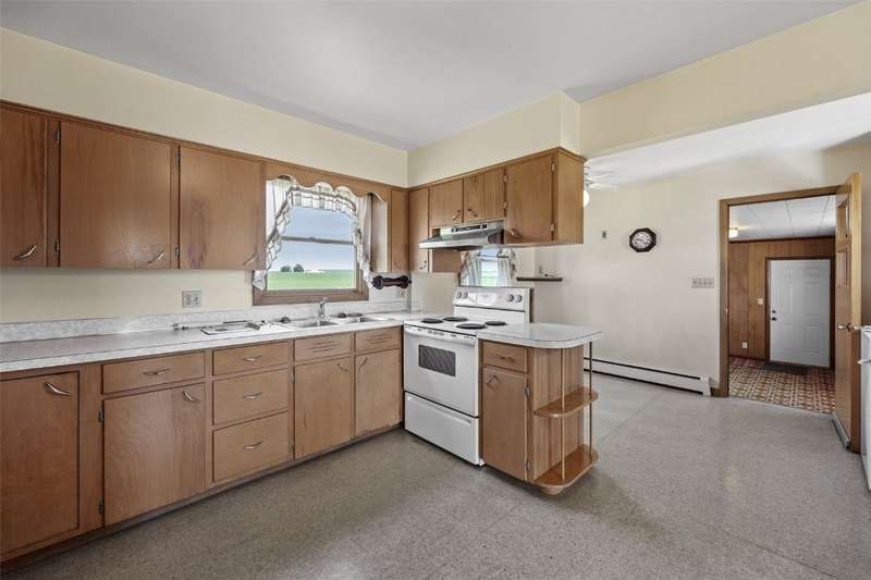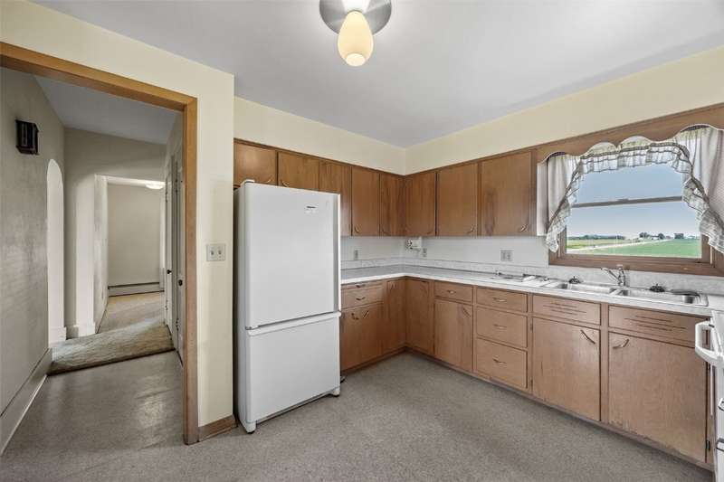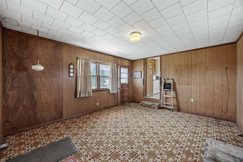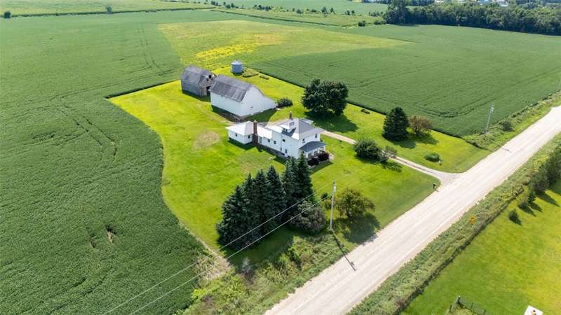 Welcome to 4681 Heins Rd a charming property set on just over two acres. The home features a brand-new steel roof, along with updated gutters and downspouts. The traditional farmhouse design includes a covered front porch, just add the porch swing and a two-car attached garage. Upstairs, there are three bedrooms and a spacious bathroom, with well-preserved original hardwood floors ready for refinishing. The main floor boasts a large kitchen, formal dining room, family room, and a convenient laundry area. The breezeway connecting the house and garage has a gas fireplace and serves as a perfect drop zone. The electrical system has been upgraded to a breaker box. Additional outbuildings include the original barn, a corn crib, and a grain bin, which could be transformed into a unique patio or binzebo. This property is being sold "as is," with inspections for the buyer's reference only. Some photos virtually staged