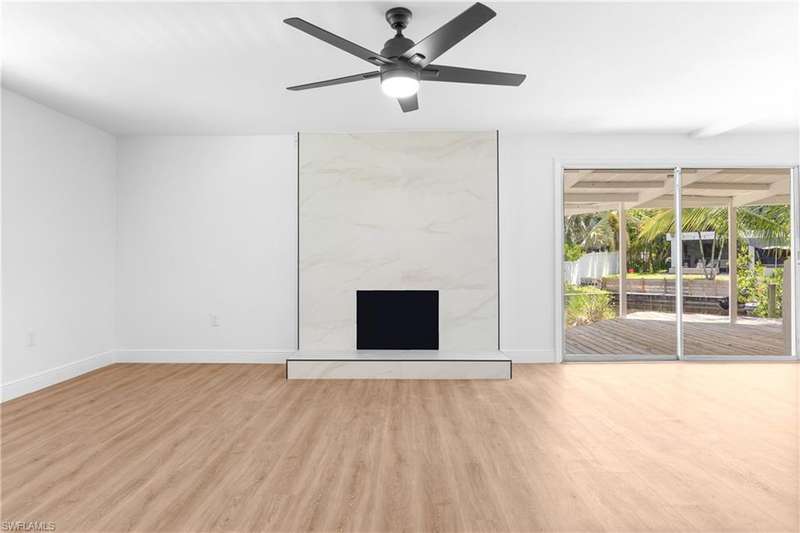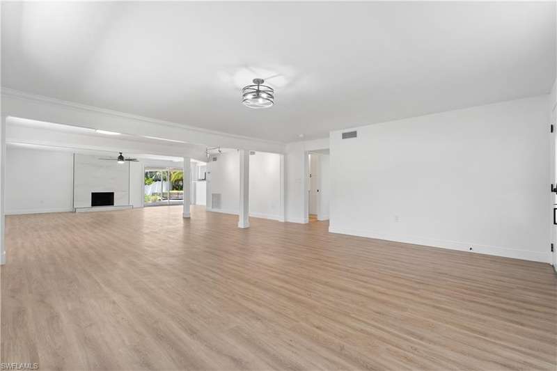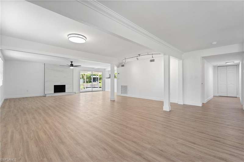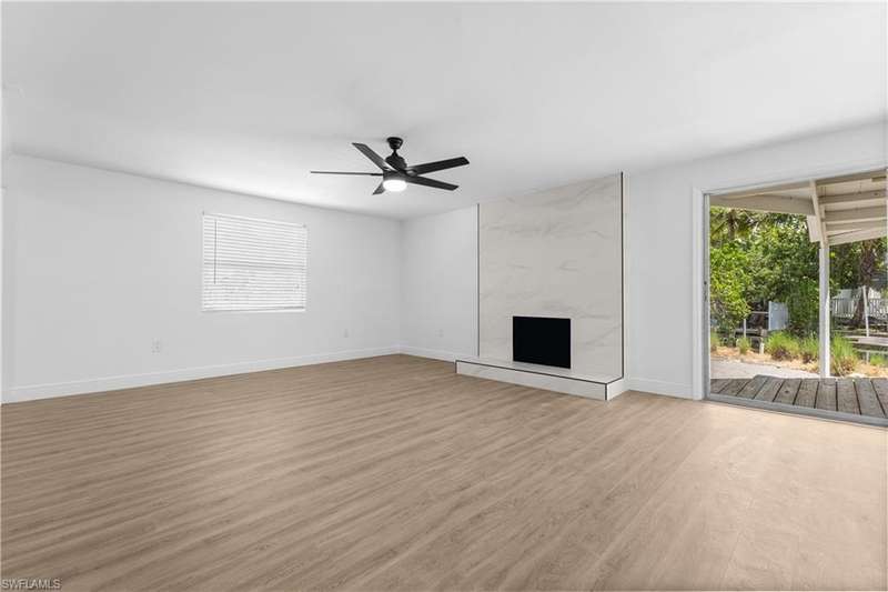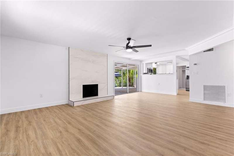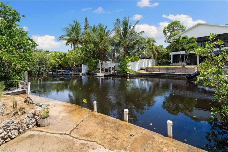 Waterfront living at its best! Enjoy 120 feet of wide canal frontage with quick Gulf access. This beautifully renovated home offers three bedrooms, two baths, and a spacious open layout filled with natural light and a cozy fireplace. In addition to a full cosmetic renovation, the HVAC system, water heater, and appliances have all been recently replaced. Step outside to a true tropical oasis on an oversized lot featuring an expansive open patio and private dock where sunsets, kayaking, paddleboarding, and boating await. Nestled on a quiet cul-de-sac in Palm River Shores with no HOA, this property is perfect for someone seeking a vacation-style retreat or an incredible investment property thanks to the central location and lack of leasing limits. Just minutes from Vanderbilt Beach, Delnor-Wiggins State Park, Mercato, and Waterside Shops. Your dream lifestyle awaits. Seller s flood policy is assumable.