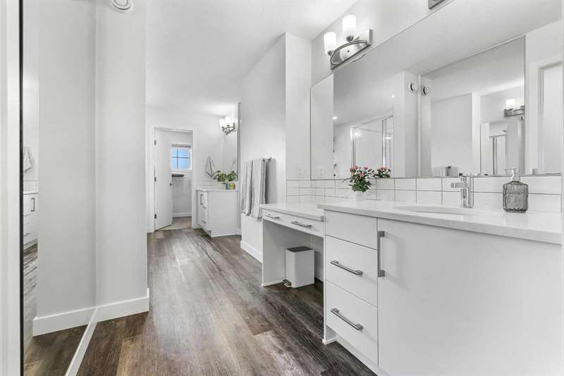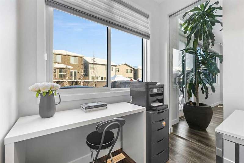 Welcome to this beautifully updated 2-storey home in Seton, offering over 3,000 sq ft of developed living space and an unbeatable location right across from the community association’s rink, courts, and amenities. The main floor features durable luxury vinyl plank flooring and an open-concept layout that’s ideal for everyday living. The kitchen is a standout with its large island, granite counters, and walk-in pantry, flowing naturally into a bright dining area and cozy living room. A cleverly tucked-away office provides the perfect work-from-home spot without sacrificing main-floor space. Upstairs, you’ll find three generous bedrooms, a bonus room for extra comfort, and a convenient upstairs laundry room. The primary suite feels like a true retreat with a 5-piece ensuite, including a soaker tub, glass shower, built-in make-up vanity and dual walk-in closets. The fully finished basement adds even more versatility with a brand-new 3-piece bathroom and a large bedroom with walk-in closet—currently set up as a music studio. Additional features include central Air Conditioning, on-demand hot water, a water softener, and a new furnace. Outside, the backyard is designed for low-maintenance enjoyment with a composite deck, poured aggregate, and mature aspens for privacy. The double garage is finished with epoxy flooring and comfortably fits two vehicles and has storage racks for tires and other items. With quick access to Deerfoot, Stoney Trail, the South Health Campus, and all of Seton’s amenities just steps away, this is a home that truly checks every box.