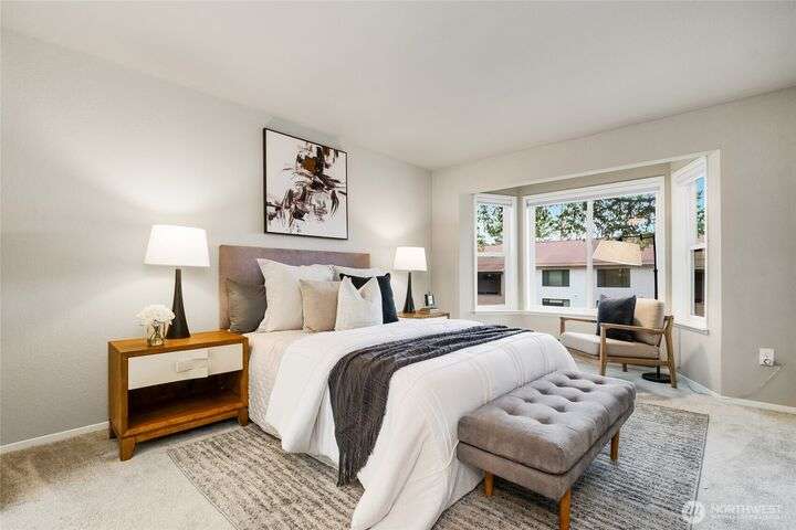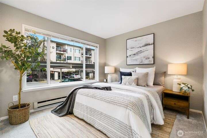Prime single-floor condo just a few blocks from DT Bellevue. Eliminate your commute & move right in! This condo is a great size, measuring 1167 square feet single floor, w/2 full size bedrooms & 2 bathrooms. Plus, there’s a unique office/den off the living room. Tasteful past remodel w/new paint, stainless steel appliances and kitchen counters. The large floor space gives you plenty of room, & there’s even a full-size W/D, plus ample storage. The condo is located in a quiet area, away from street, facing east/west. $800 dues are inclusive, covering 8 items. This condo offers a great combination of affordability & convenience, making it an ideal place to live & work in Bellevue. The grounds are well-maintained & includes a pool.