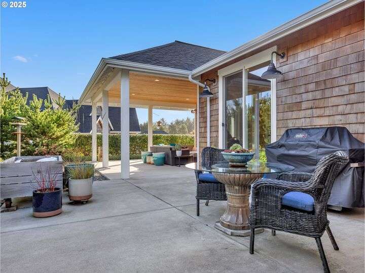 Coastal elegance at The Reserve at Gearhart! Just minutes from the ocean, this beautiful single level custom home invites you to slow down and savor the moment. Sip coffee on the spacious covered front porch while enjoying the sunrise, host gatherings in the stunning kitchen with high-end appliances, quartz counters, and island with breakfast bar, or unwind on the peaceful covered back patio. The dreamy primary suite is your private retreat featuring double vanities, lighted mirrors, a soaking tub, walk-in shower, and an expansive walk-in closet. Engineered wood floors, a cozy gas fireplace, and a thoughtful layout make life here effortless. This special home is truly a must-see!