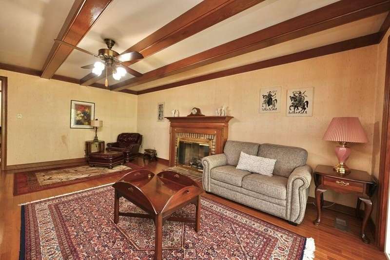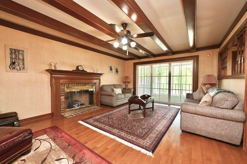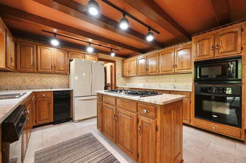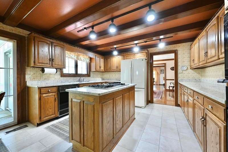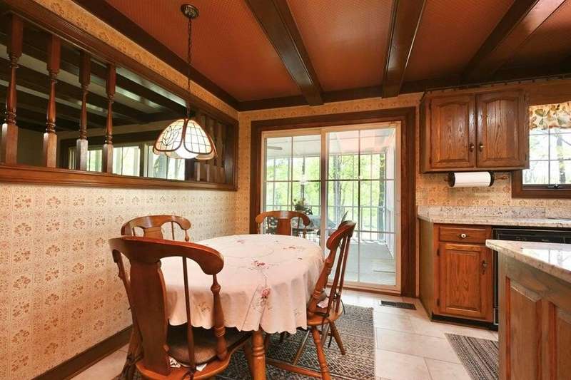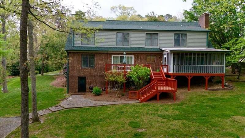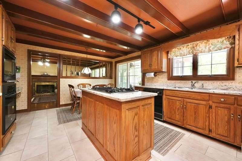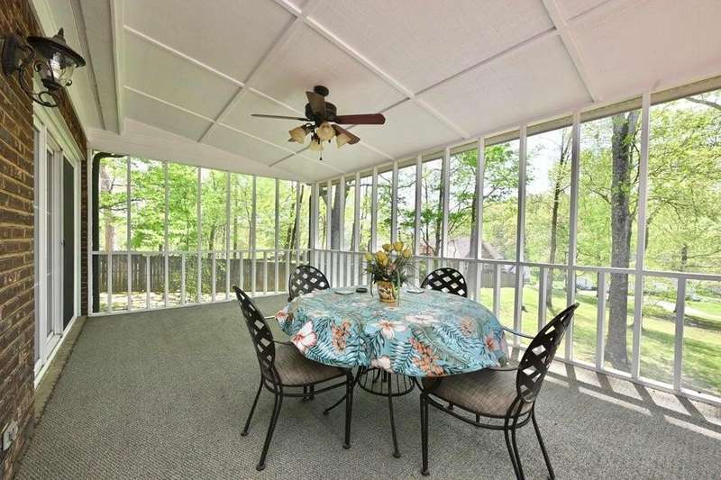 Location, craftsmanship, serenity & charm! All that you're looking for-and more. This brick and wood siding home sits on a beautifully landscaped lot in the elegant King Den neighborhood, just minutes from schools, shopping, and dining. The main level features hardwood floors, separate formal living and dining spaces, a spacious office/bedroom, and a kitchen highlighted by stately wood beam ceilings, granite countertops, a gas cooktop, and a dine-in breakfast nook with French door access to the screened back porch. Just steps away, enjoy the large and comfortable family room and its gas fireplace. Downstairs you'll find a large, partially finished basement with LVP flooring, plumbing for a bathroom, one car utility garage access, generous storage space, and room for a workshop-all awaiting your personal touches. Upstairs are additional living spaces, two spacious bedrooms, a full bath with tiled shower, and a primary bedroom with a wood burning fireplace, two walk-in closets, and a huge en suite bath with bidet, skylights, and a jetted tub. Living space outside is just as plentiful, with a large screened back porch, as well as a deck and pergola, perfect for entertaining. Come see all that this exceptional property has to offer. Call to schedule your tour today!
