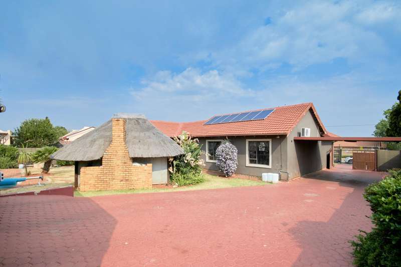 For Sale: Spacious 3-Bedroom Family Home For sale is a beautiful and well-maintained home that combines comfort, practicality, and great outdoor living. The property offers 3 spacious bedrooms, with the main bedroom featuring its own en-suite bathroom for privacy and convenience. The second bathroom serves the remaining bedrooms, making it ideal for family living. The kitchen has been recently upgraded with modern finishes and ample cupboard space, providing a stylish yet functional area for cooking and entertaining. A separate dining area allows for family meals and gatherings, while the well-sized lounge offers plenty of space to relax and unwind. Stepping outside, the home boasts a wonderful entertainment setup with a lapa and sparkling pool?Çöperfect for hosting friends or enjoying sunny afternoons with family. The property also includes a double garage and additional covered parking for two vehicles, ensuring secure and convenient parking options. Extra features add even more value to this home. Solar panels help reduce electricity costs, while an electric fence provides peace of mind and security. The yard is neatly maintained, offering both space and appeal for outdoor activities. This home is well-suited for families who want a comfortable, secure, and inviting space to call their own. *Prepaid Electricity