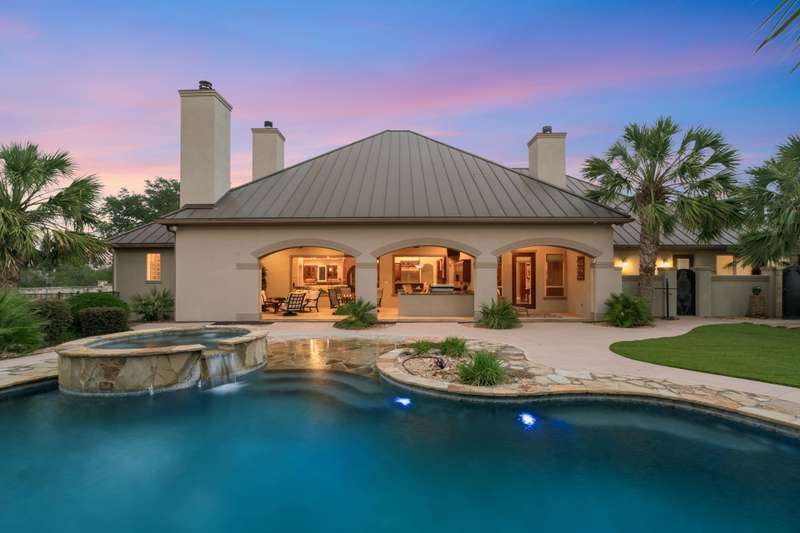Welcome to this Texas Hill Country ~4,500 square foot resort living masterpiece, crafted by Cadillac Homes in 2009. Nestled on 9 tranquil acres shared with deer and majestic oaks, this gated retreat offers luxury and privacy. Relax on the screened porch by the sparkling pool, or in the soothing hut tub, and entertain on three private pickle ball courts- perfect for gatherings under starry skies. Enjoy dinner on a summer evening with your family in the outdoor kitchen and outdoor living area with fireplace. With custom arched stonework and soaring ceilings, this architectural gem blends timeless elegance and comfort. The gourmet kitchen has a pot filler, warming drawer, double ovens, gas cooking, granite island, and large walk in pantry. The en-suite master bedroom complete with a fireplace and outdoor shower access has a spa like bathroom with a separate shower and jacuzzi tub. This stunning estate offers two spacious secondary bedrooms each with it's own bathroom, a custom library with beautiful hardwood floors and paneling, an exercise room, wet bar, and so much more! No city taxes! 3 car garage. Just minutes from downtown Boerne, Geneva school, and San Antonio, your Hill Country sanctuary awaits! Schedule your private showing today. - 11/10/2025 3:16:43 AM