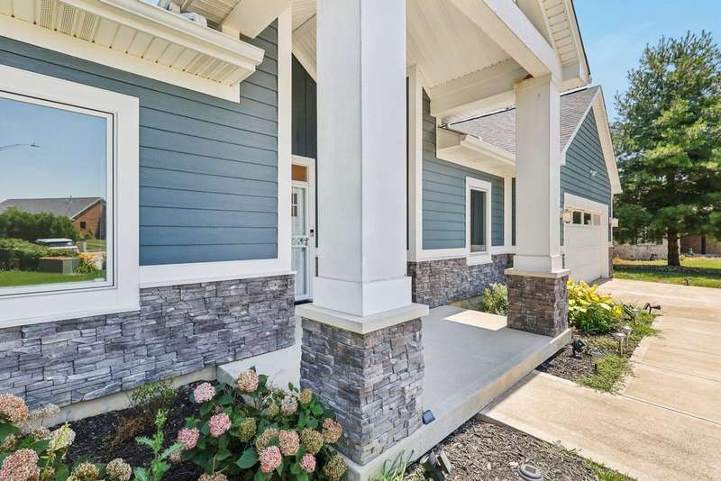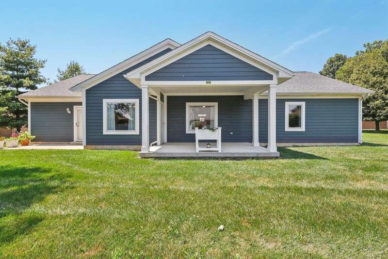 *** SELLER HAS ACCEPTED A CONTINGENT OFFER. IF YOU OR YOUR BUYER DOES NOT HAVE A HOME TO SELL, PLEASE FEEL FREE TO SCHEDULE A SHOWING. ***At the end of a quiet cul-de-sac, where sidewalks wind past friendly neighbors and the hum of everyday life slows down--you'll find the kind of home that just feels right the moment you arrive. Built in 2018 by locally respected Benanzer Construction, this one-level beauty combines smart design with stylish finishes, all wrapped in curb appeal. Stone accents and a welcoming front porch set the tone before you even step inside. The entryway opens into a bright and airy great room with soaring ceilings--perfect for gatherings, lazy Sundays, or a quiet night in. At the center of it all is the kitchen: granite countertops, stainless steel appliances, soft-close cabinetry, and a large eat-at island that begs for morning coffee chats or evening charcuterie with friends. There's even a 5x2 pantry for your Costco hauls and holiday baking supplies. The split-bedroom layout gives everyone their space. On one side, the primary suite is a true retreat with vaulted ceilings, a generous walk-in closet, and an en suite bath that checks every box: double vanity, walk-in shower, and a soaking tub made for Ohio's chilly nights. On the other side of the home, two additional bedrooms and a full guest bath offer privacy for family or guests. The oversized 3-car tandem garage (yes, three in town!) connects to a smartly placed laundry room. Bonus: there's a utility shed out back for even more storage. Smart thermostat? Ring doorbell? You bet. Convenience meets peace of mind here. Step outside to enjoy not one, but two patios--one off the dining room and another off the garage--overlooking a spacious and beautiful backyard that's ready for fire pit nights, weekend BBQs, or maybe even a garden project or two. Located in Greenville City Schools and just minutes from shopping, dining, and everyday essentials.