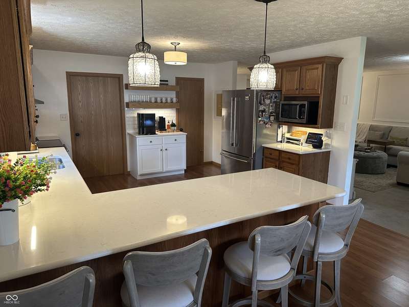 Discover this meticulously maintained ranch home brimming with upgrades and modern touches throughout. Step inside to find beautifully renovated bathrooms with contemporary finishes, stylish wood accent moldings, and new exterior doors that add a fresh, polished feel. Natural light fills the space through new energy-efficient vinyl windows, enhancing the inviting atmosphere. The spacious kitchen is a standout feature, boasting quartz countertops, under-cabinet lighting, and ample cabinetry-perfect for everyday living and entertaining. Enjoy peace of mind with a new roof, gutters, and leaf guards, along with a recently installed furnace and central air conditioner to ensure year-round comfort. The sunroom, currently being used as a home office, offers a flexible space ideal for remote work or relaxation. Step outside to a covered back patio that overlooks a well-maintained yard and a handy yard barn for additional storage. This home truly has it all-style, comfort, and thoughtful upgrades-ready for you to move in and enjoy.