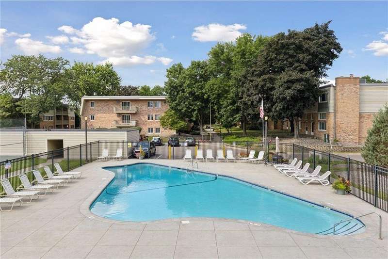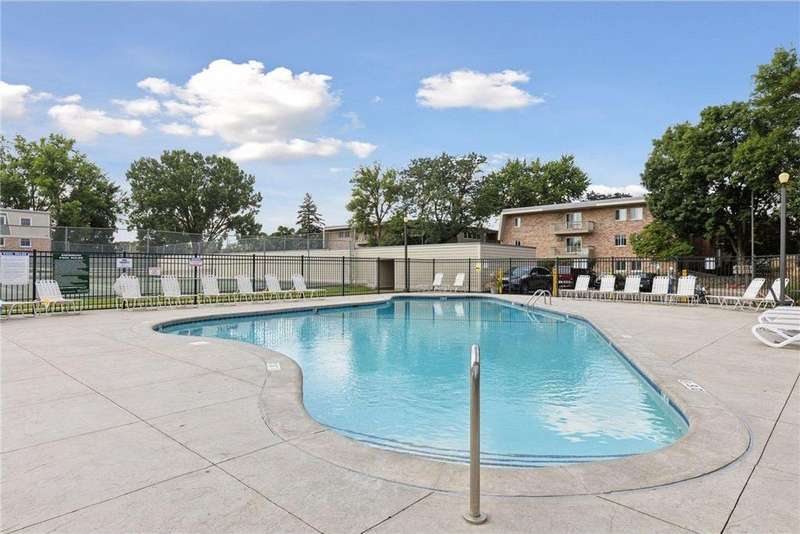 Welcome to this completely renovated condo in lovely Greensboro in the heart of St. Louis Park. This ground floor end unit lives like a townhome with it's own entrance directly outside. Thoughtfully renovated in 2021 with new laminate flooring, carpet, paint and remodeled bathroom. Completely updated kitchen features new cabinetry, counters, fixtures, flooring and new appliances. Spacious dinette with new flooring opens into light-and-bright living room with a sliding door leading directly out to the patio and lovely grounds. Two comfortable, spacious bedrooms offer plush neutral carpet and large closets. Conveniently located close to several walking/biking trails-just steps to the scenic trail around Lamplighter Pond. Enjoy the associations heated outdoor saltwater pool, tennis/pickle ball courts & newly renovated community room. Close to lots of trendy restaurants, quaint shops and downtown. Don't miss the dedicated Dog Park for Greensboro residents only, located behind the parking structure. On the south side of the complex. Paved paths connect to Northside city park with ballfields, concession stand, picnic shelter, playground, tennis courts, lighted skating rink with warming house and sliding hill! Better hurry on this!