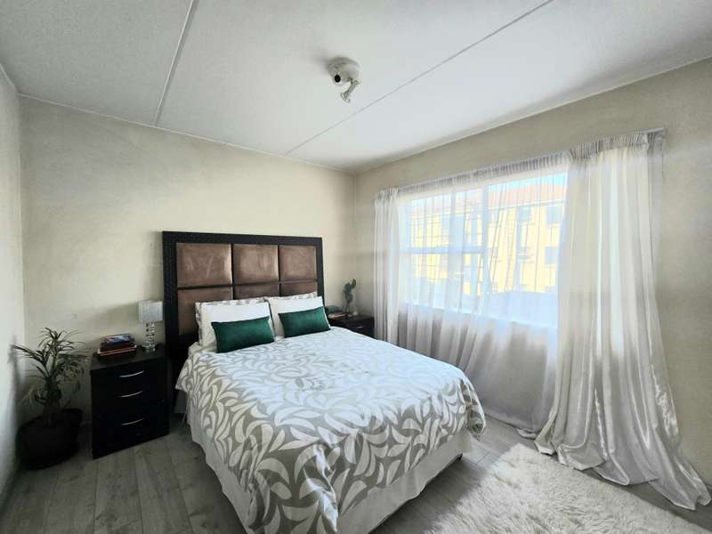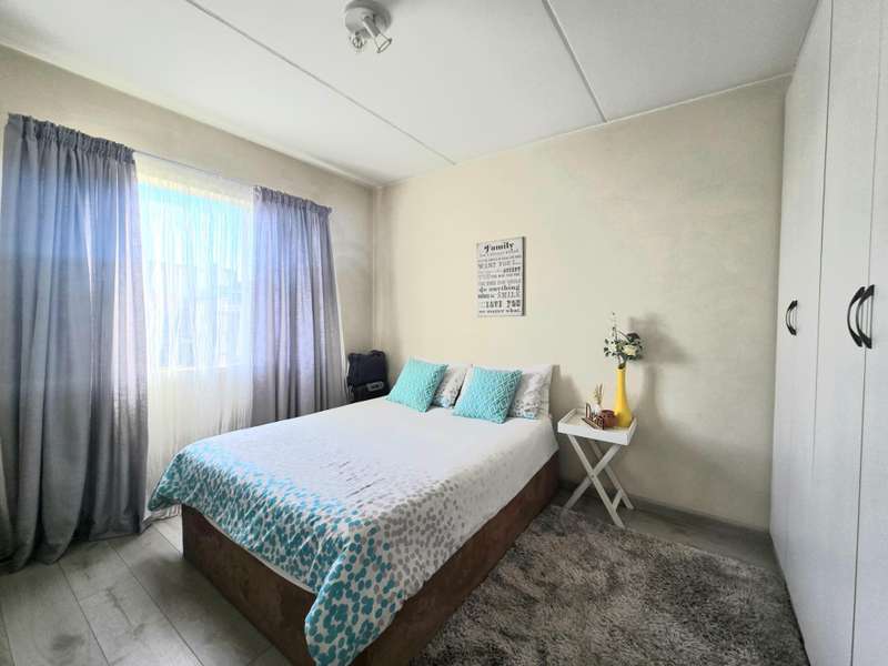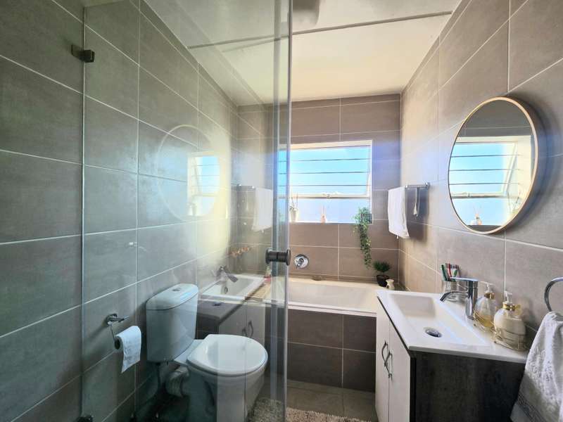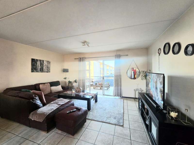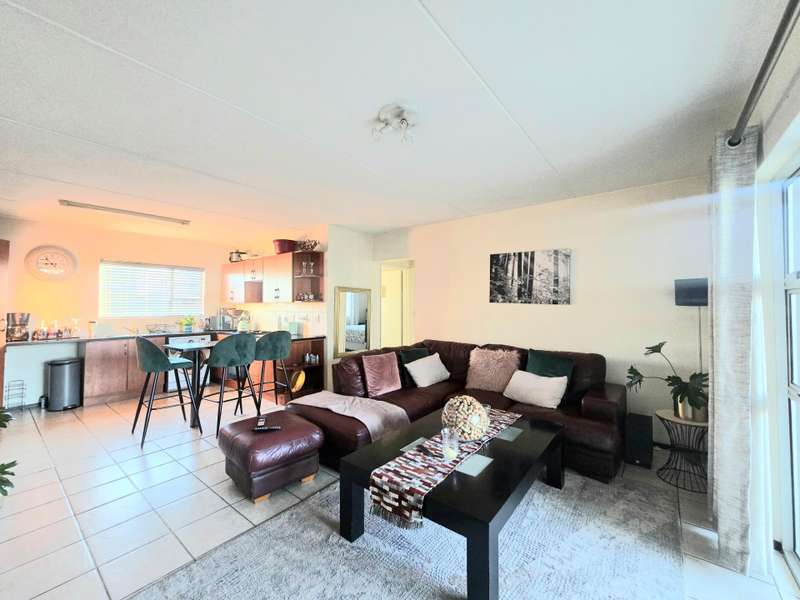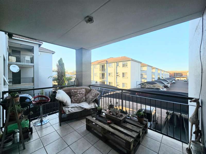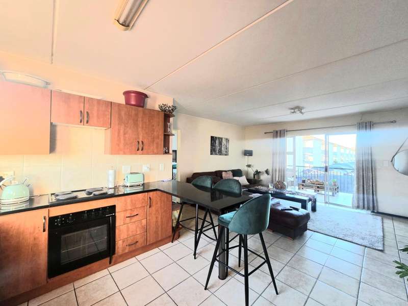 2 BEDROOM, 1 BATHROOM APARTMENT ON FIRST FLOOR WITH ENCLOSED BALCONY Open plan kitchen with lounge area. Built-in-cupboards. Bathroom with shower and bath. Estimate Rates R650 Estimate Levies R1 300 Fibre ready. 24/7 Security. Intercom system. Modern apartment - Ready to move in.
